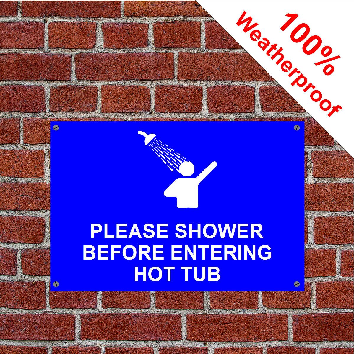 PLEASE SHOWER BEFORE ENTERING HOT TUB SIGN OR VINYL LABEL 5550WBL WEATHERPROOF [ENDED]