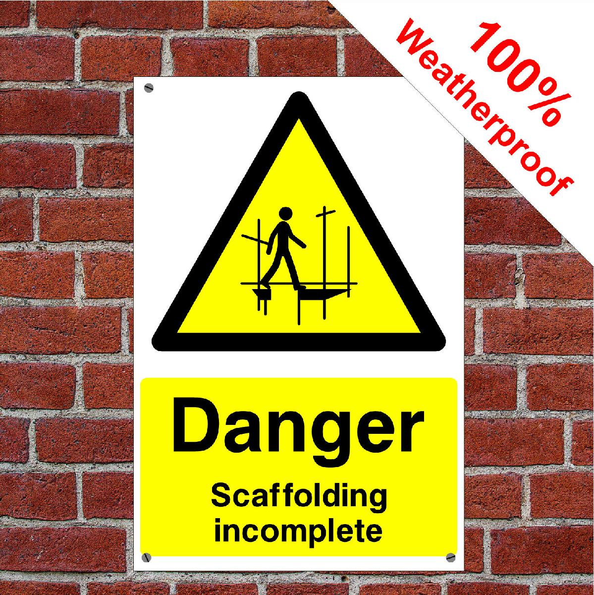 DANGER SCAFFOLDING INCOMPLETE HEALTH AND SAFETY SIGNS CONS021 EXTREMELY DURABLE [ENDED]