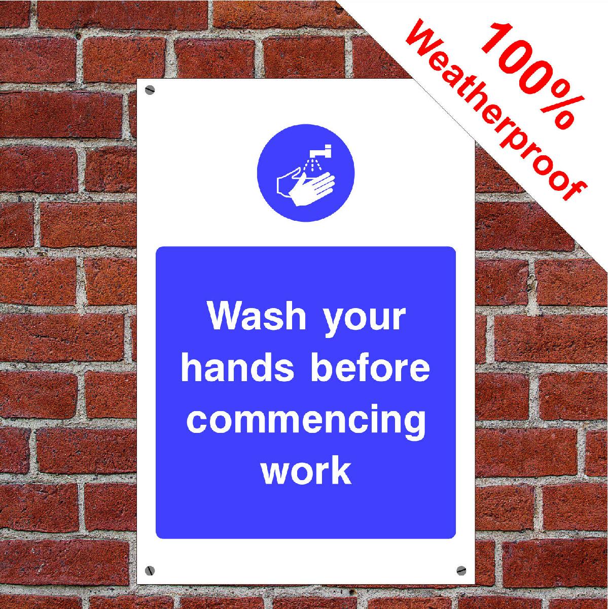 WASH YOUR HANDS BEFORE COMMENCING WORK SIGN FOO01 DURABLE AND WEATHERPROOF [ENDED]