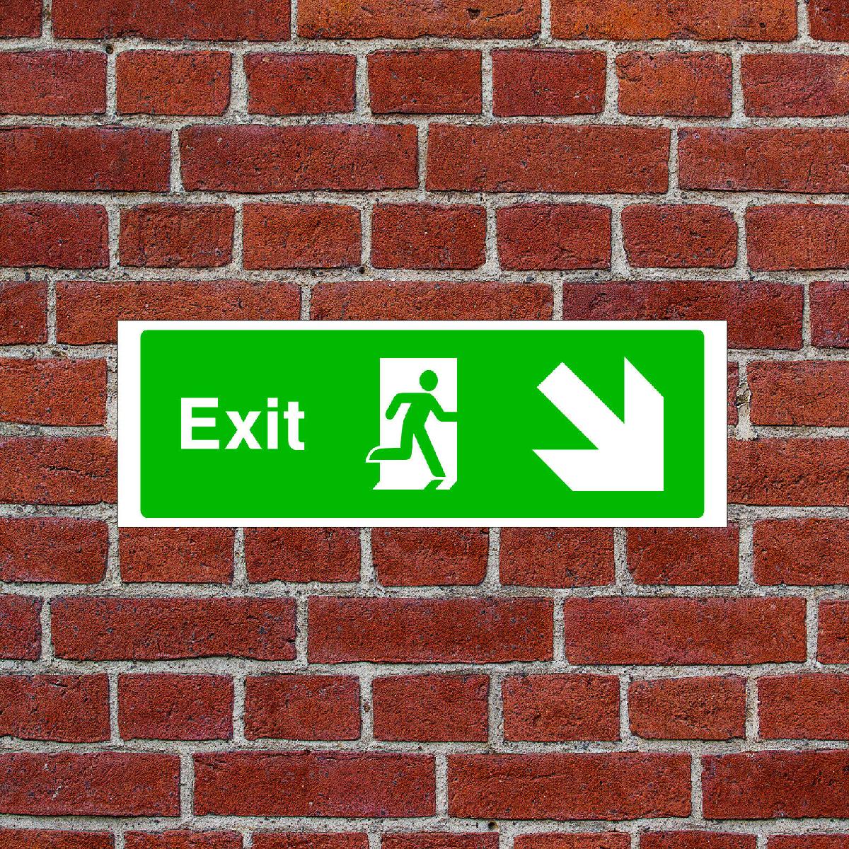 FIRE EXIT DOWN RIGHT ARROW SIGN OR SELF ADHESIVE VINYL STICKER EMER014 45CMX15CM [ENDED]