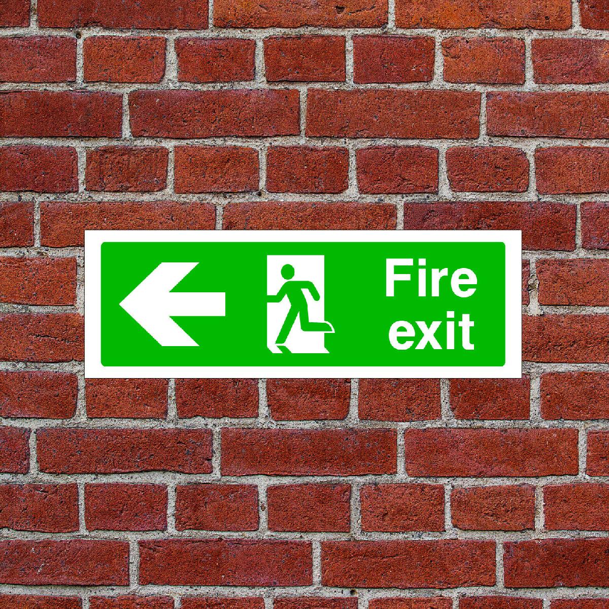 FIRE EXIT LEFT ARROW SIGN OR SELF ADHESIVE VINYL STICKER EMER03 45CMX15CM [ENDED]