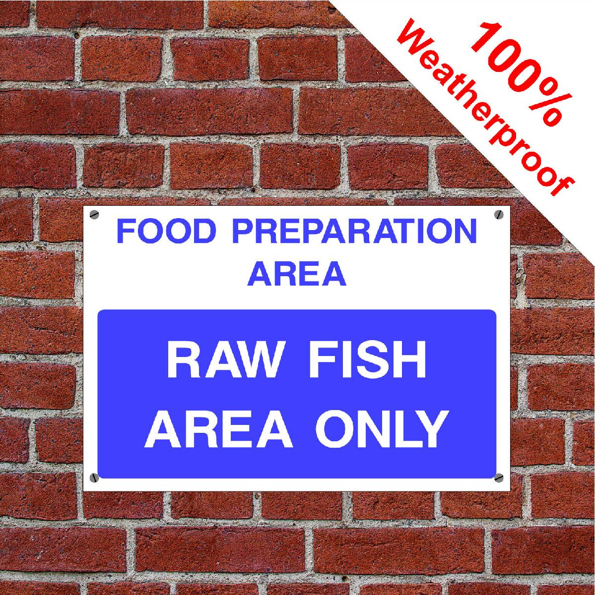 RAW FISH AREA ONLY SIGN FOOD HYGIENE FOO62 DURABLE AND WEATHERPROOF [ENDED]