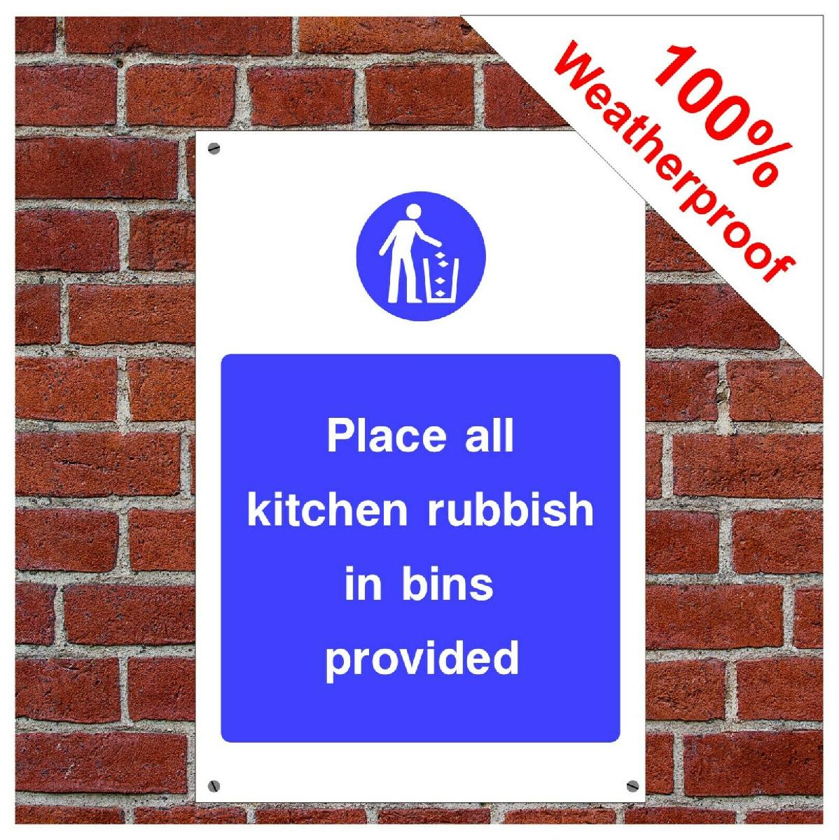 PLACE ALL KITCHEN RUBBISH IN BINS PROVIDED SIGN FOO14 DURABLE AND WEATHERPROOF [ENDED]