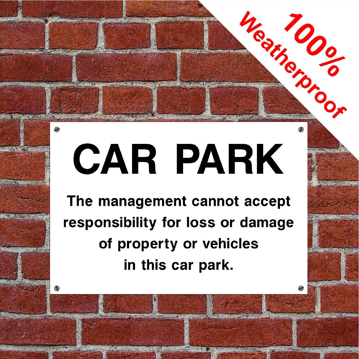 CAR PARK DISCLAIMER HOTEL SAFETY SIGN HOT01 DURABLE AND WEATHERPROOF [ENDED]