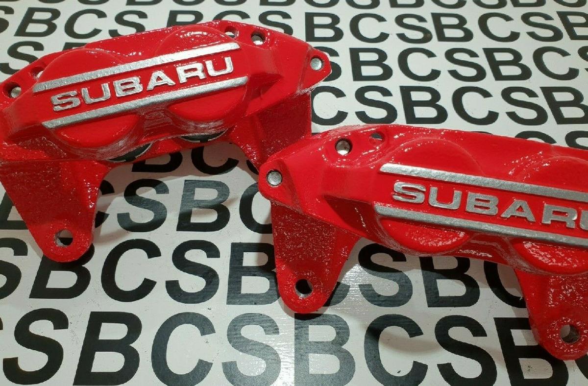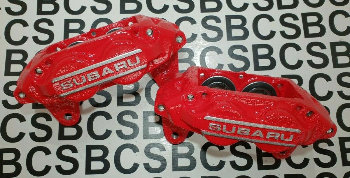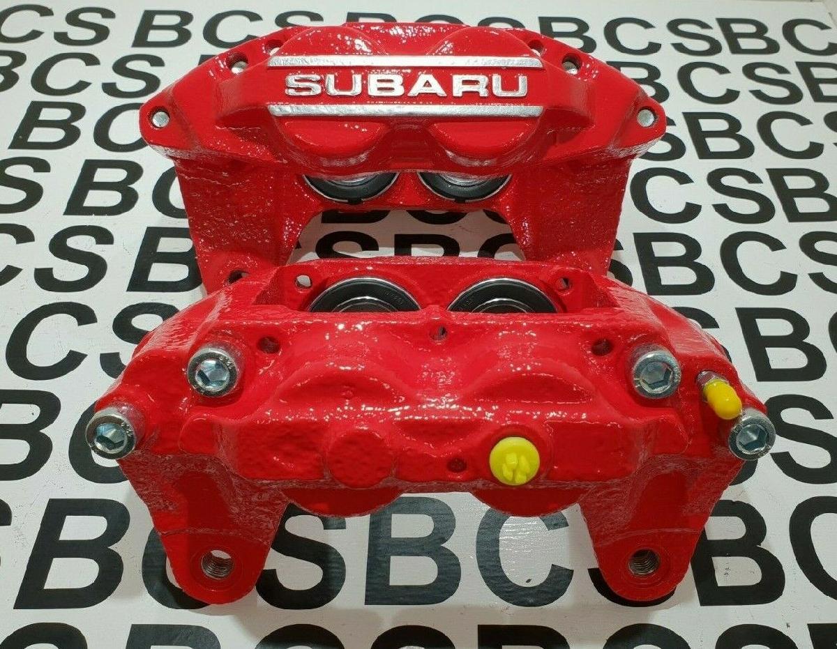 FOR SUBARU IMPREZA 2.0 2.5 TURBO WRX STI FRONT GENUINE 4 POT BRAKE CALIPERS RED [ENDED]