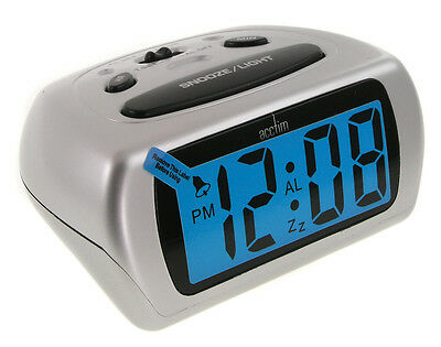 ACCTIM BLACK AURIC ALARM CLOCK BLUE LCD BATTERY OPERATED DIGITAL LIGHTED [ENDED]