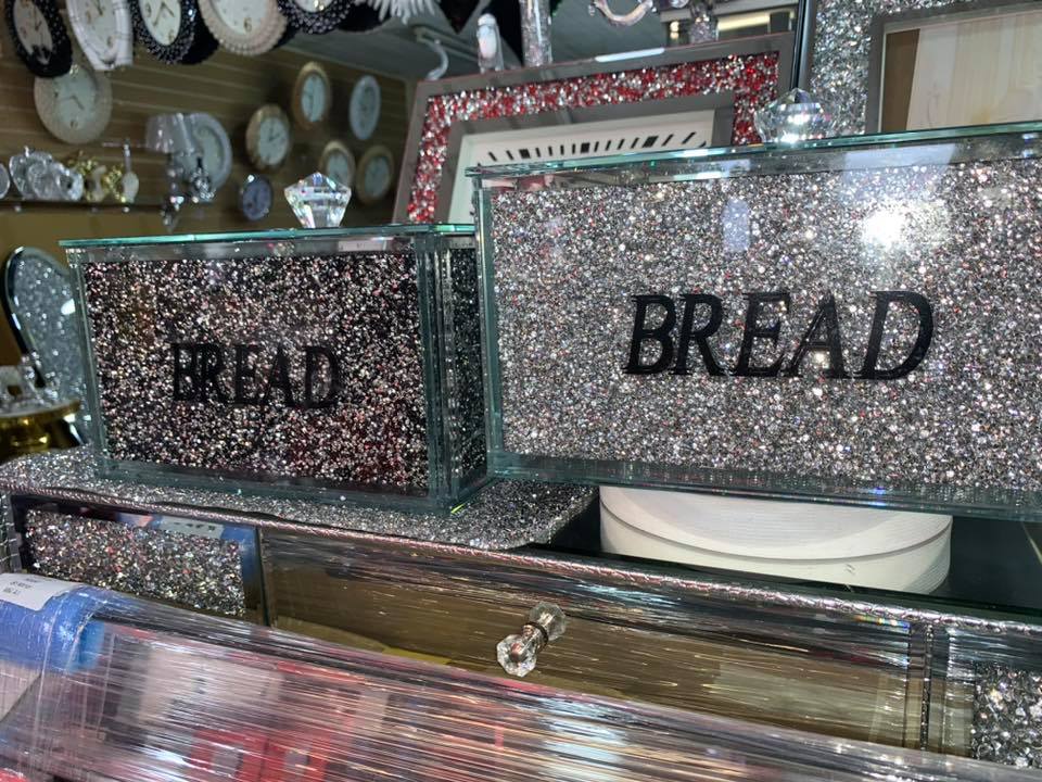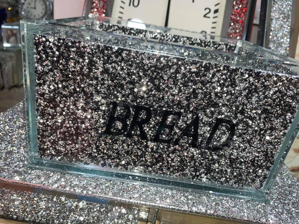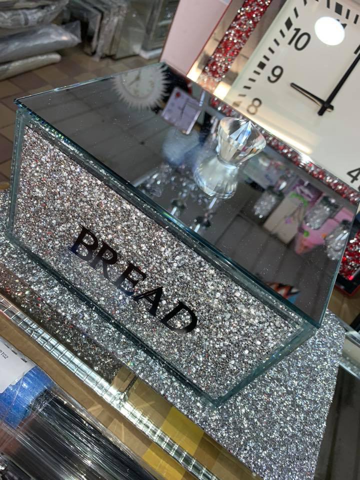SILVER CRUSHED DIAMOND CRYSTAL MIRRORED BREAD BIN CONTAINER [ENDED]