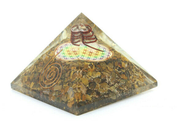 LARGE ORGONITE PYRAMID "TIGER EYE FLOWER OF LIFE" CLEANSE NEGATIVE ENERGY [ENDED]