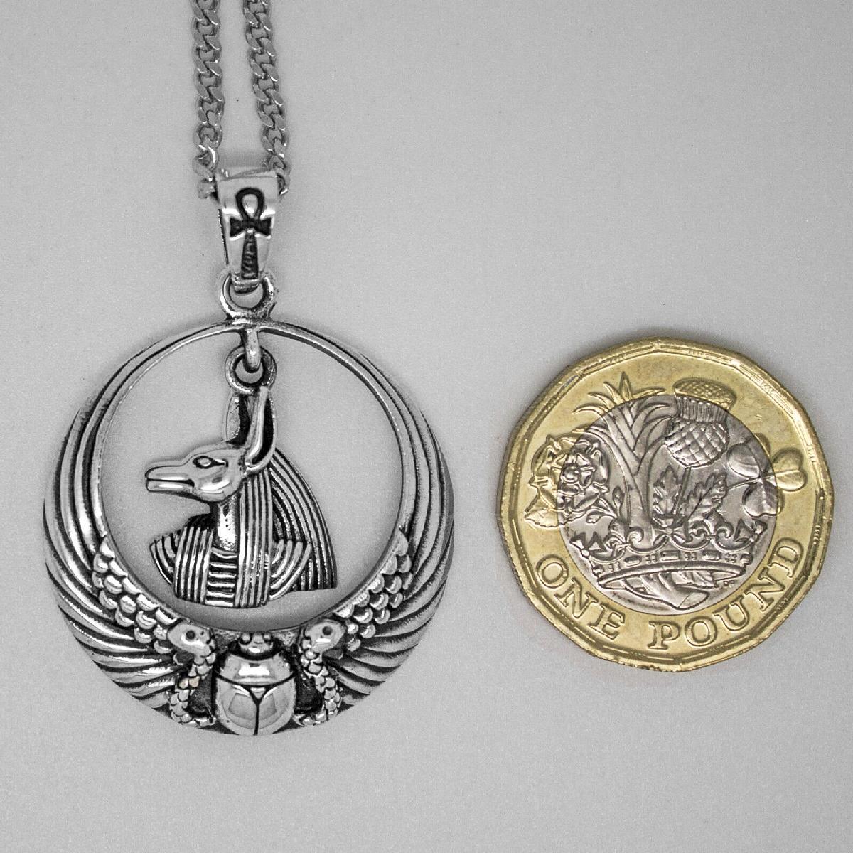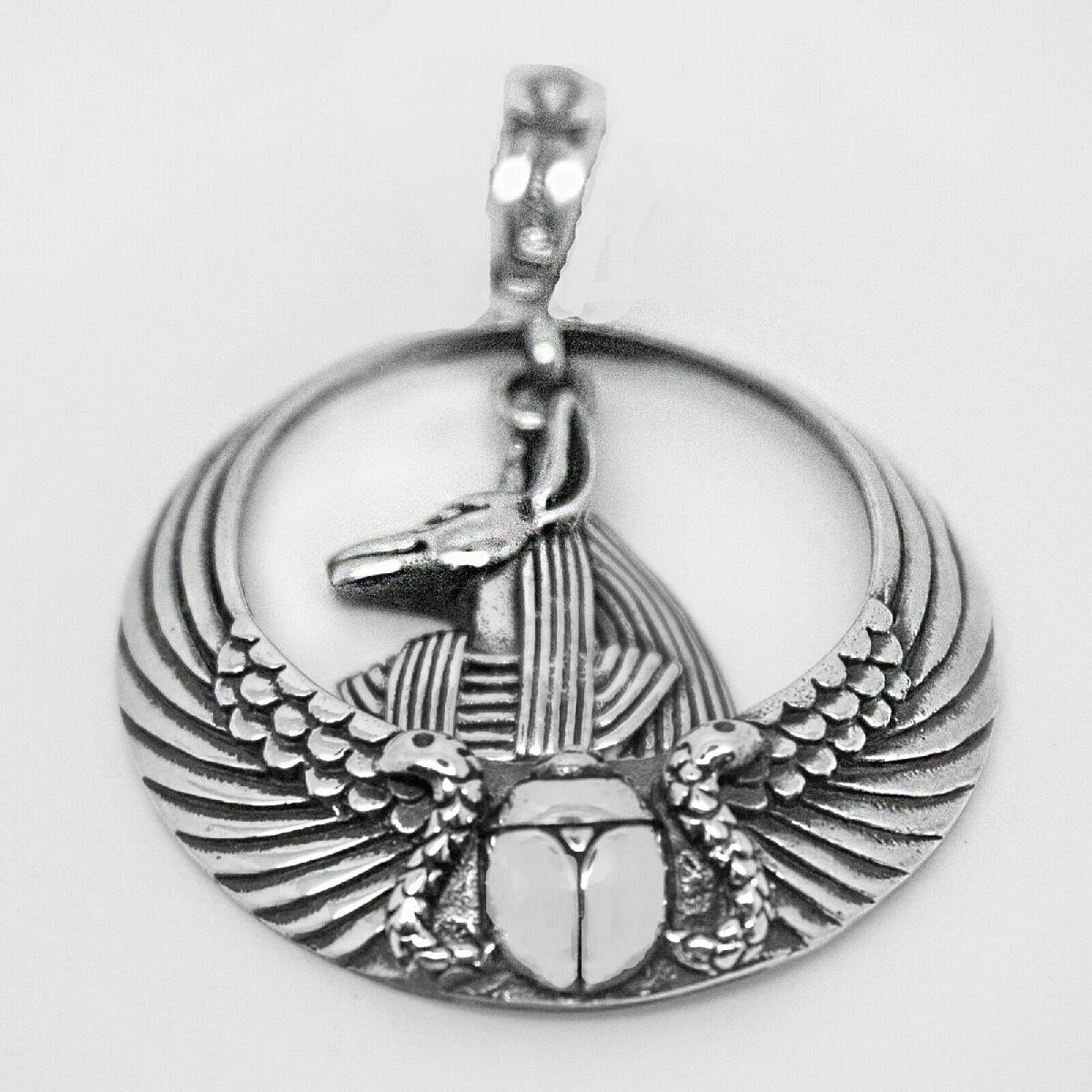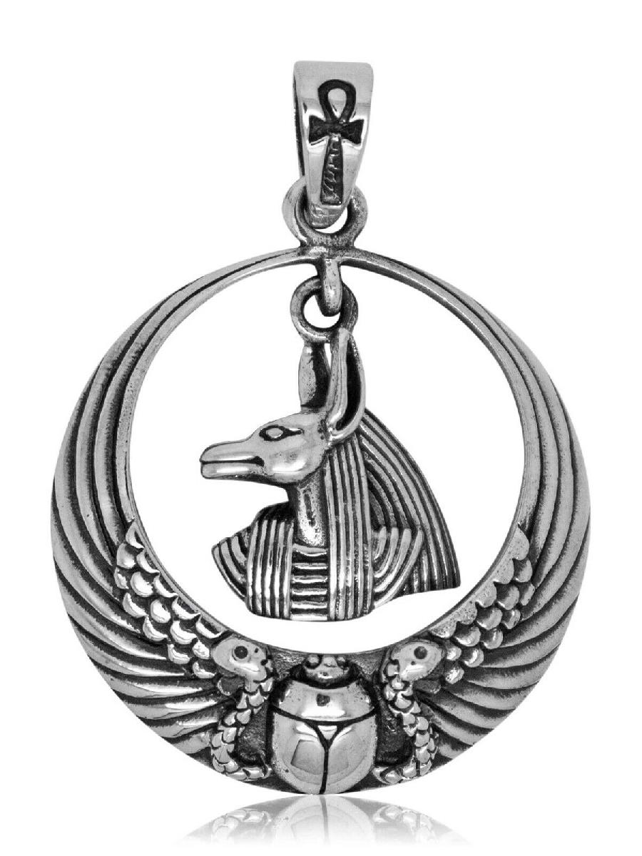 925 SOLID STERLING SILVER ANCIENT EGYPT ANUBIS WITH ANKH SCARABEO PENDANT [ENDED]