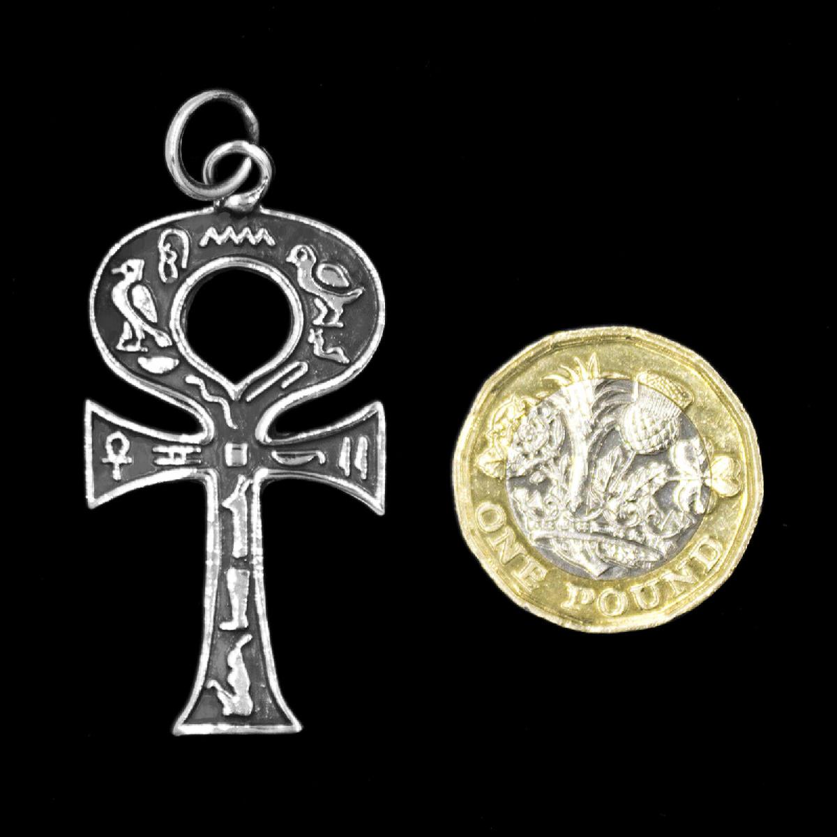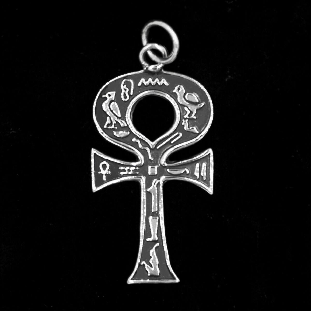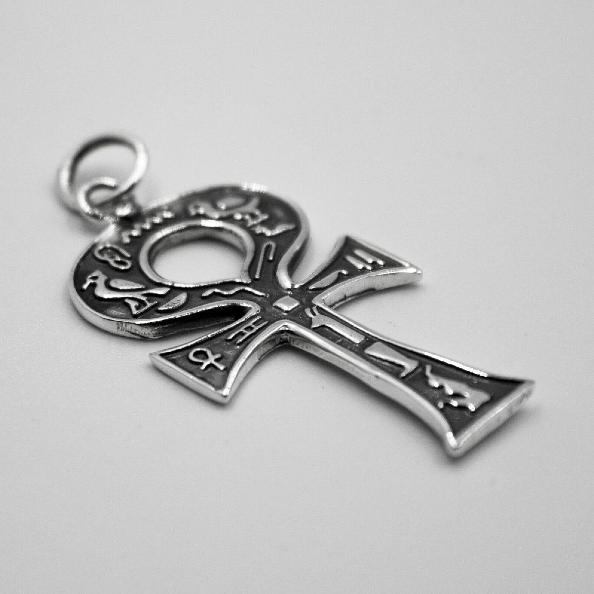 925 SOLID STERLING SILVER ANCIENT EGYPT LARGE ANKH CROSS W. HIEROGLYPHS PENDANT [ENDED]
