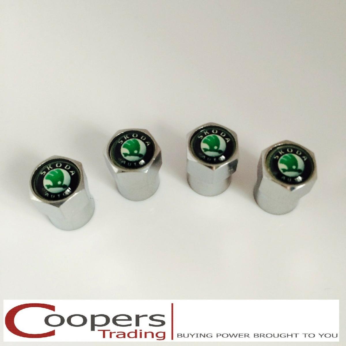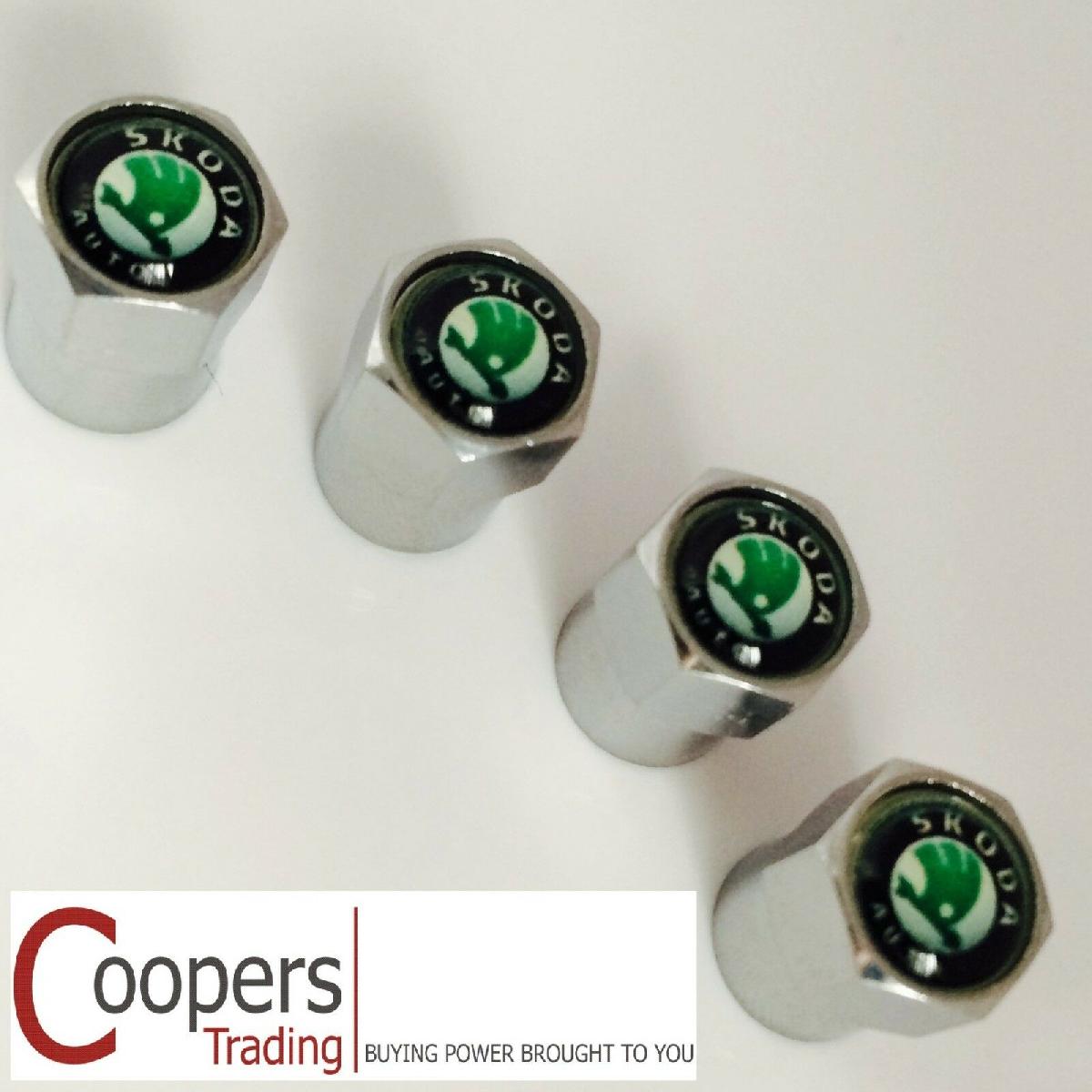 SKODA CHROME DUST VALVE CAPS - SET OF 4 IN SEALED BAG [ENDED]