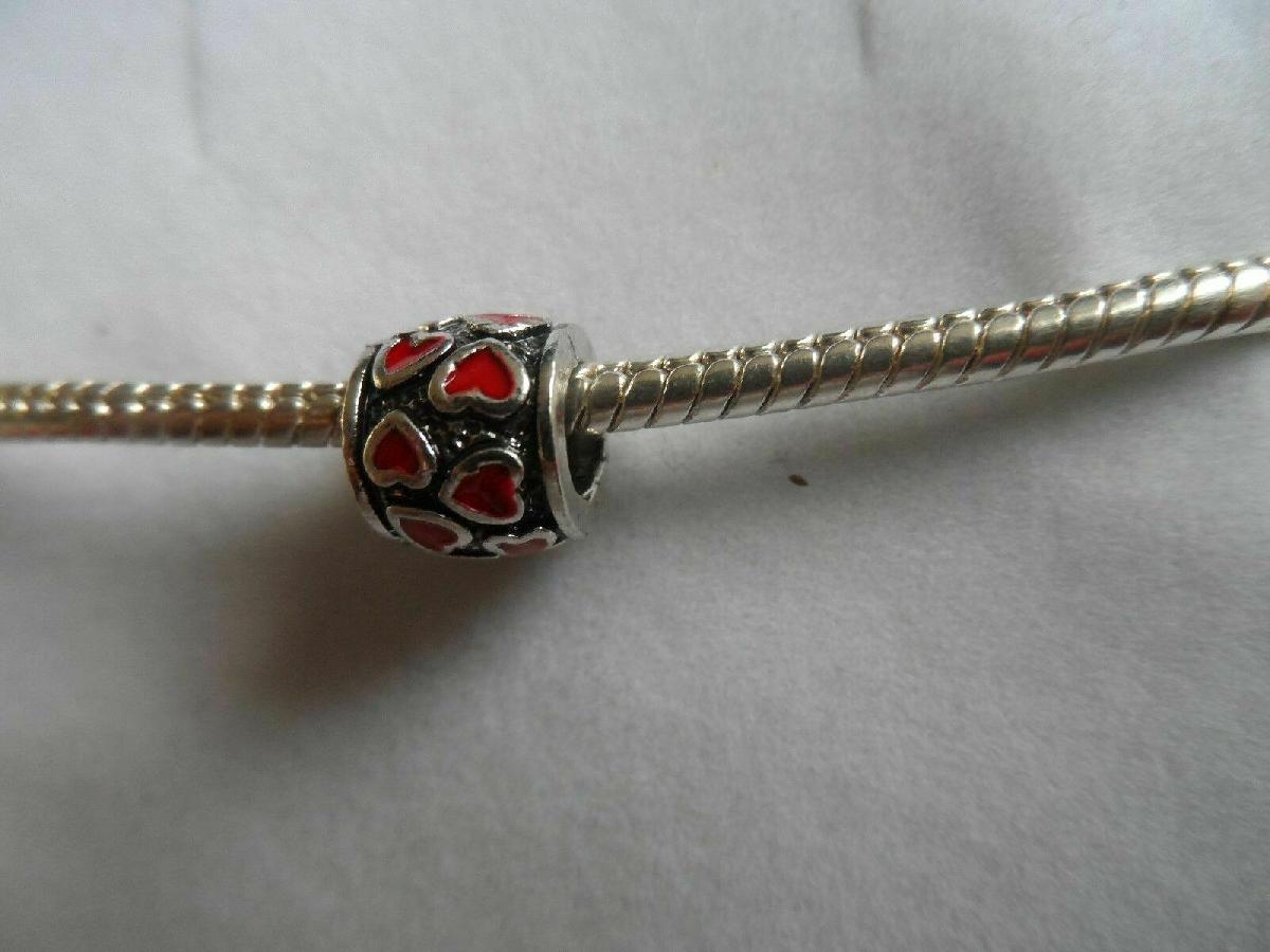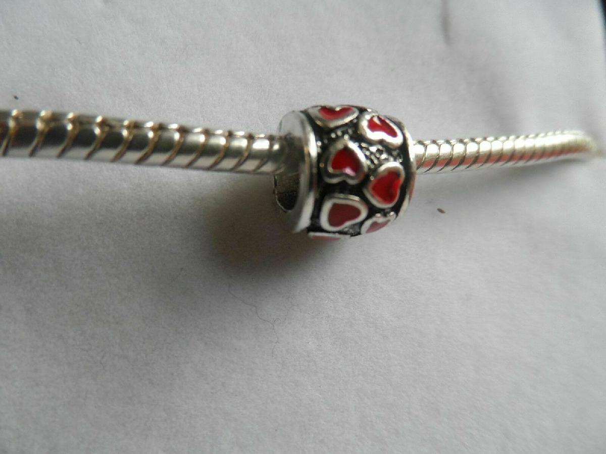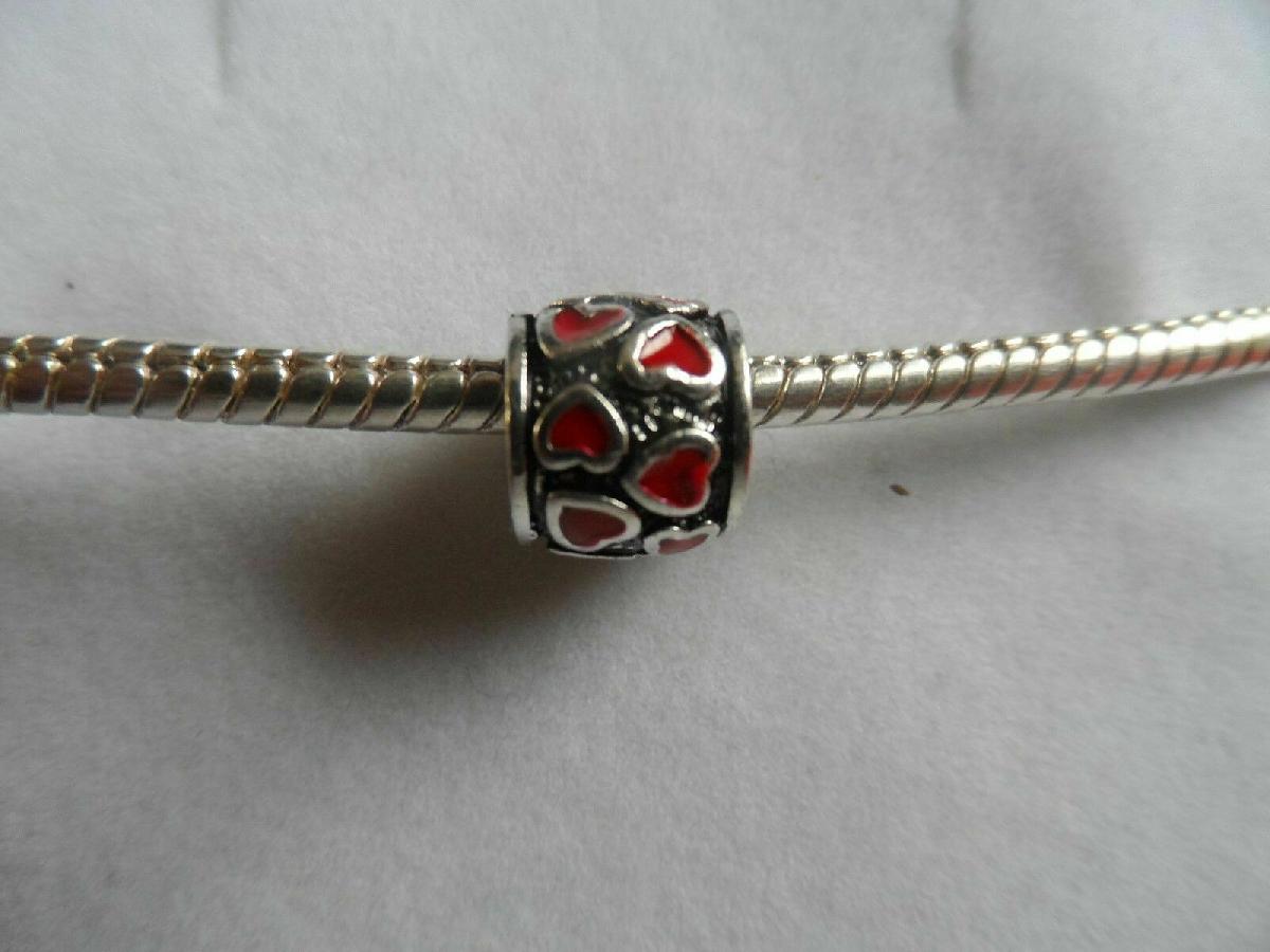 SILVER PLATED & ENAMEL RED LOVE HEART BARREL EUROPEAN CHARM/BEAD [ENDED]