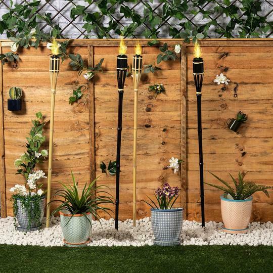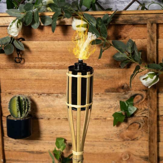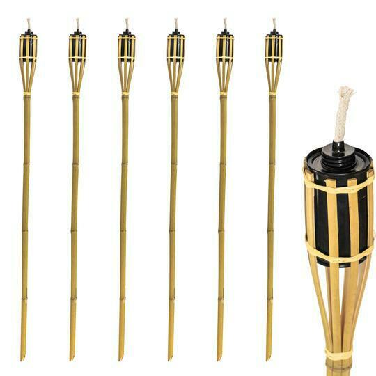 6 PIECE BAMBOO GARDEN TIKI TORCH SET NATURAL OUTDOOR PARTY UK DISPATCH 5* RATED [ENDED]