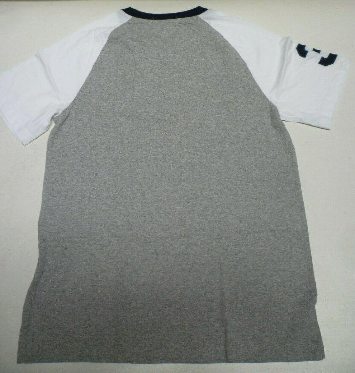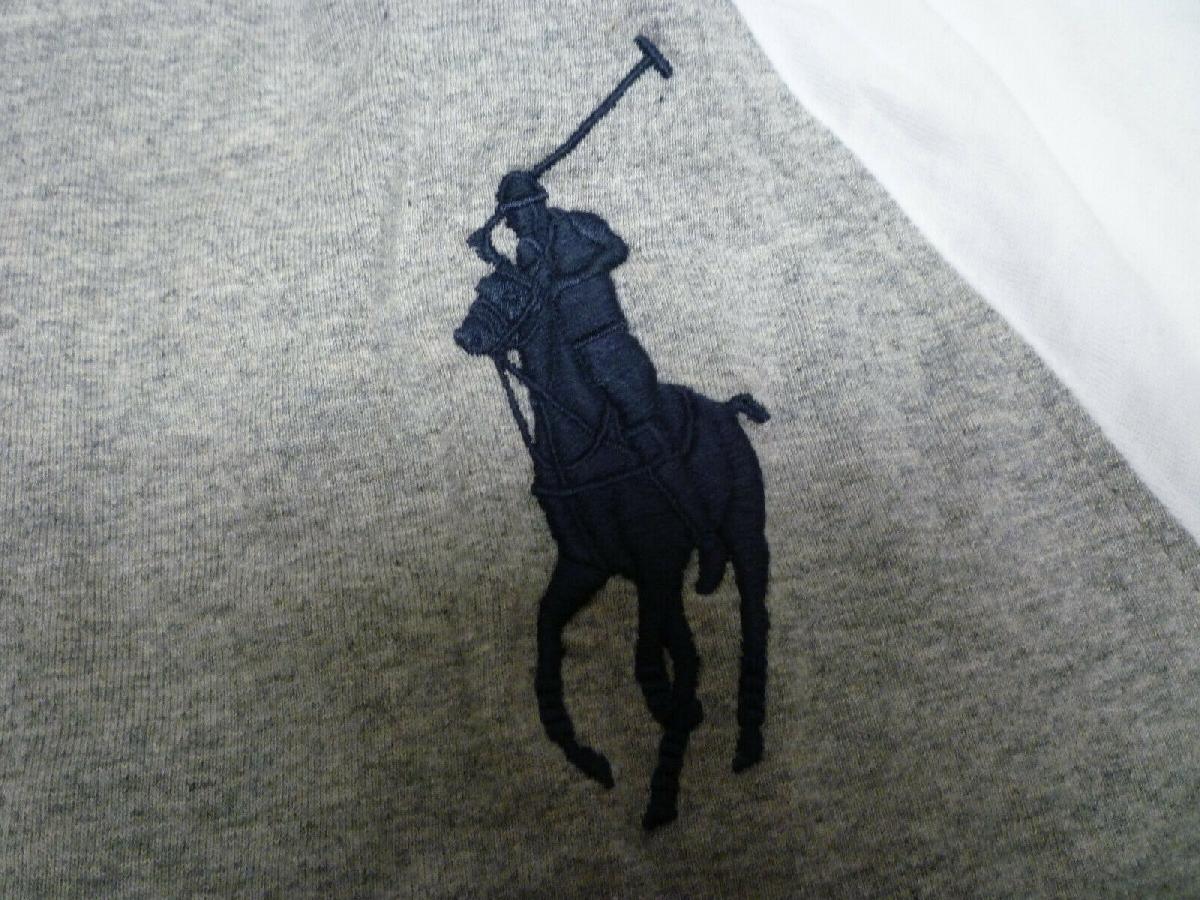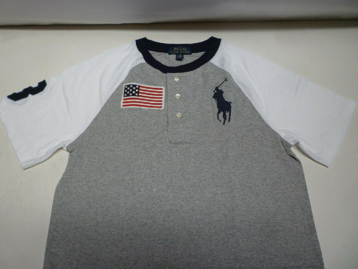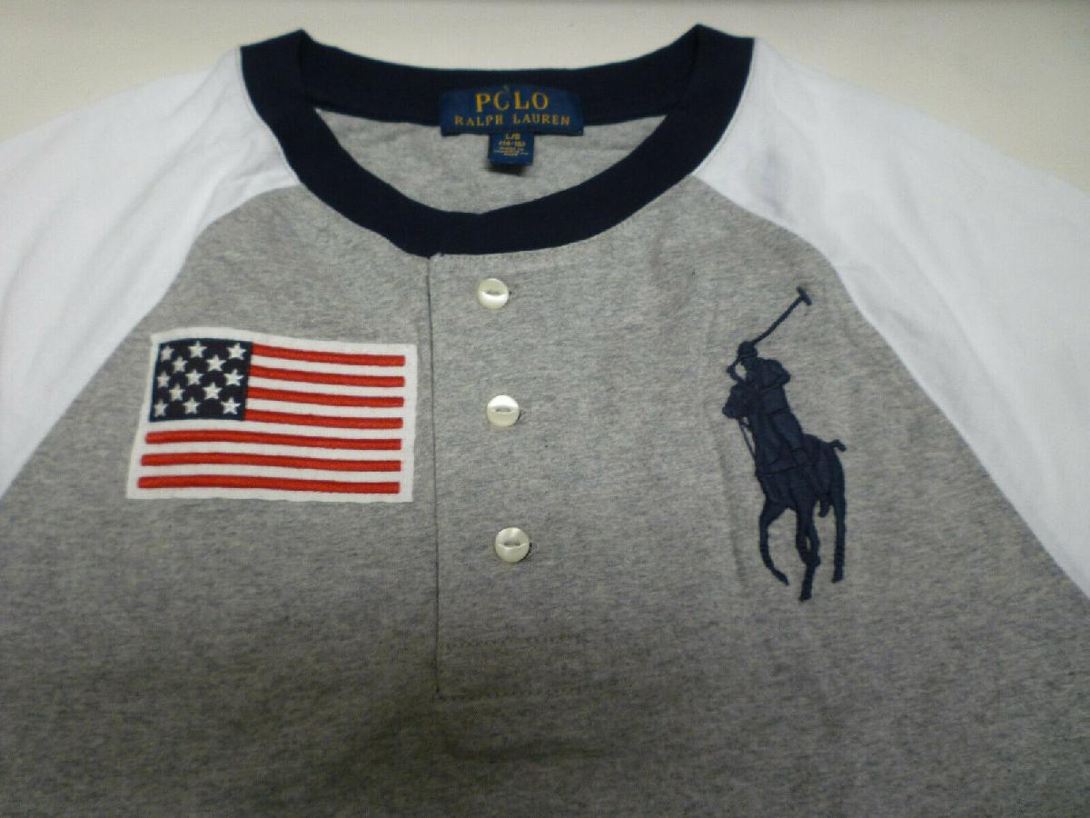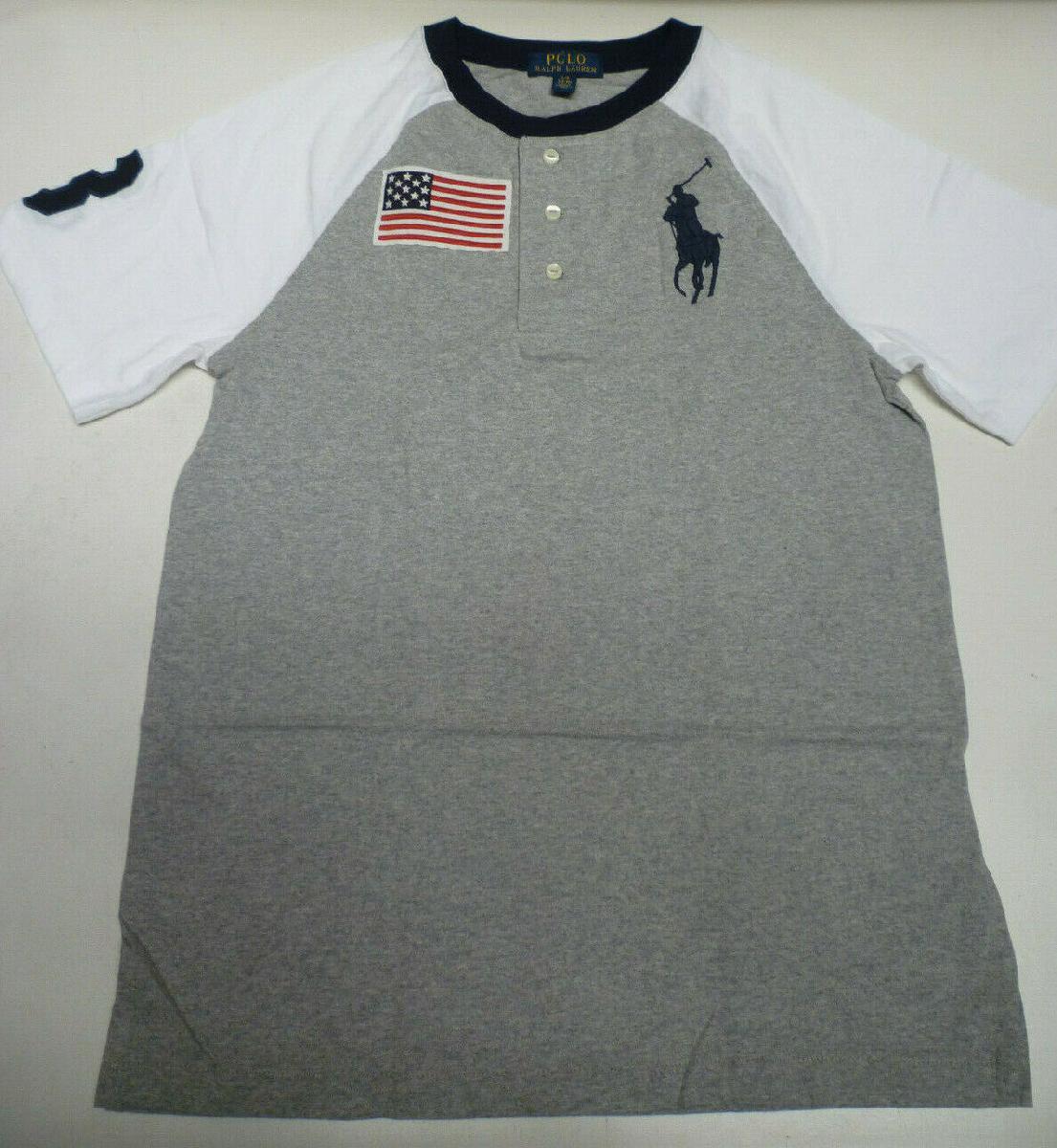 RALPH LAUREN POLO BOYS GREY & BLUE CREW NECK BIG PONY LOGO USA FLAG T SHIRT TOP [ENDED]