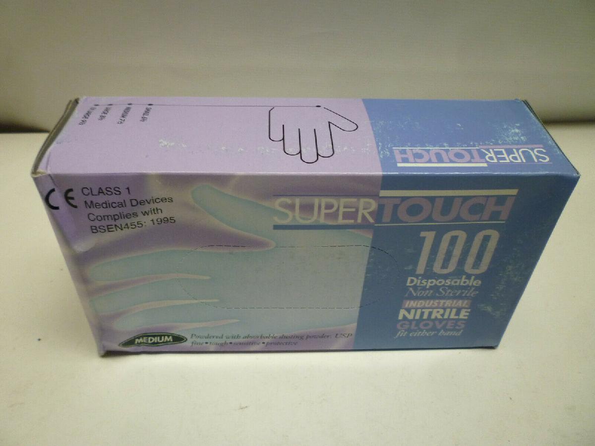100 X DISPOSABLE POWDED GLOVES BLUE SUPERTOUCH / 1 FULL BOX OF 100 - NEW - M [ENDED]