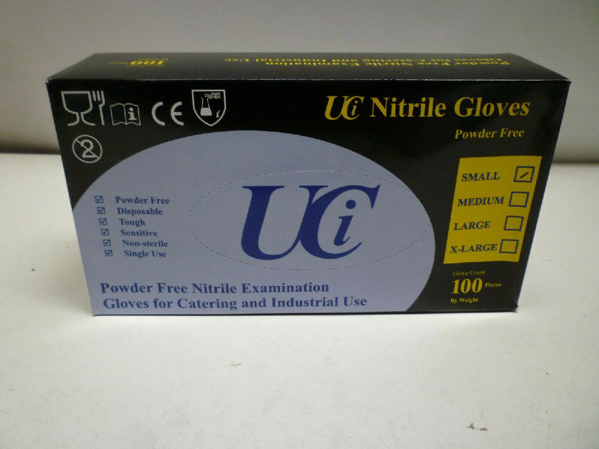100 DISPOSABLE POWDER FREE NITRILE GLOVES BLUE UCI ONE FULL BOX OF 100 - NEW / S [ENDED]