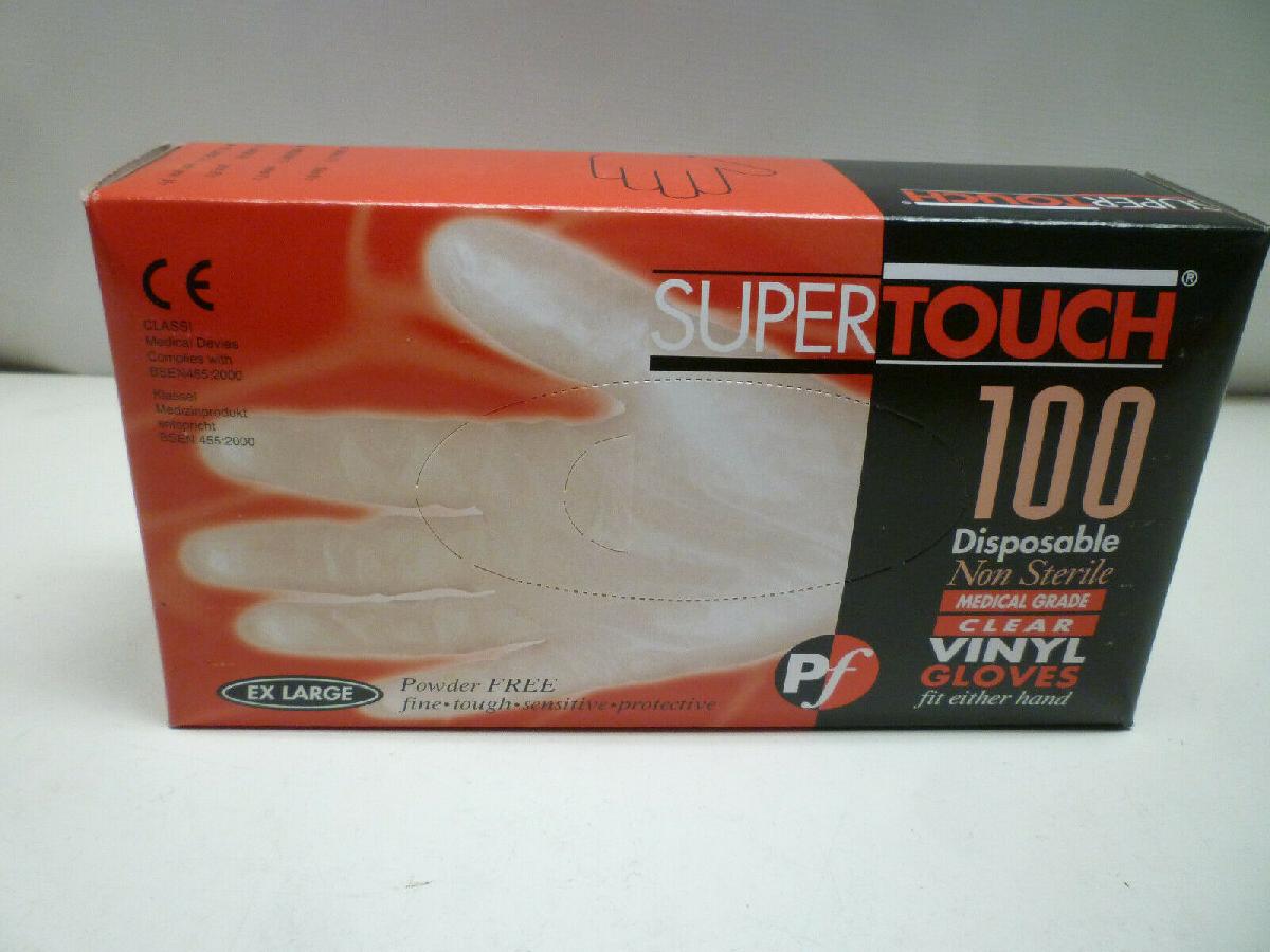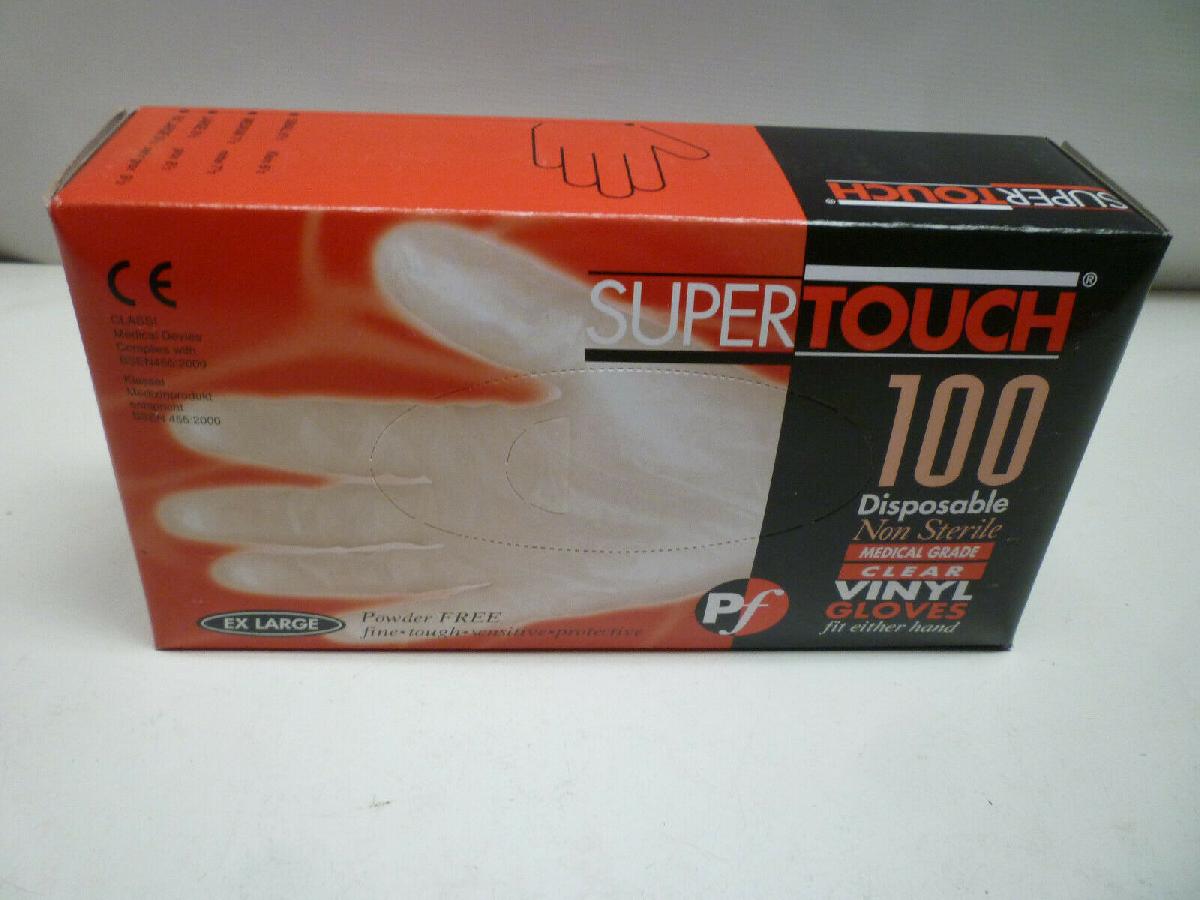 100 DISPOSABLE MEDICAL VINYL GLOVES SUPERTOUCH - 1 FULL BOX OF 100 - NEW - XL [ENDED]