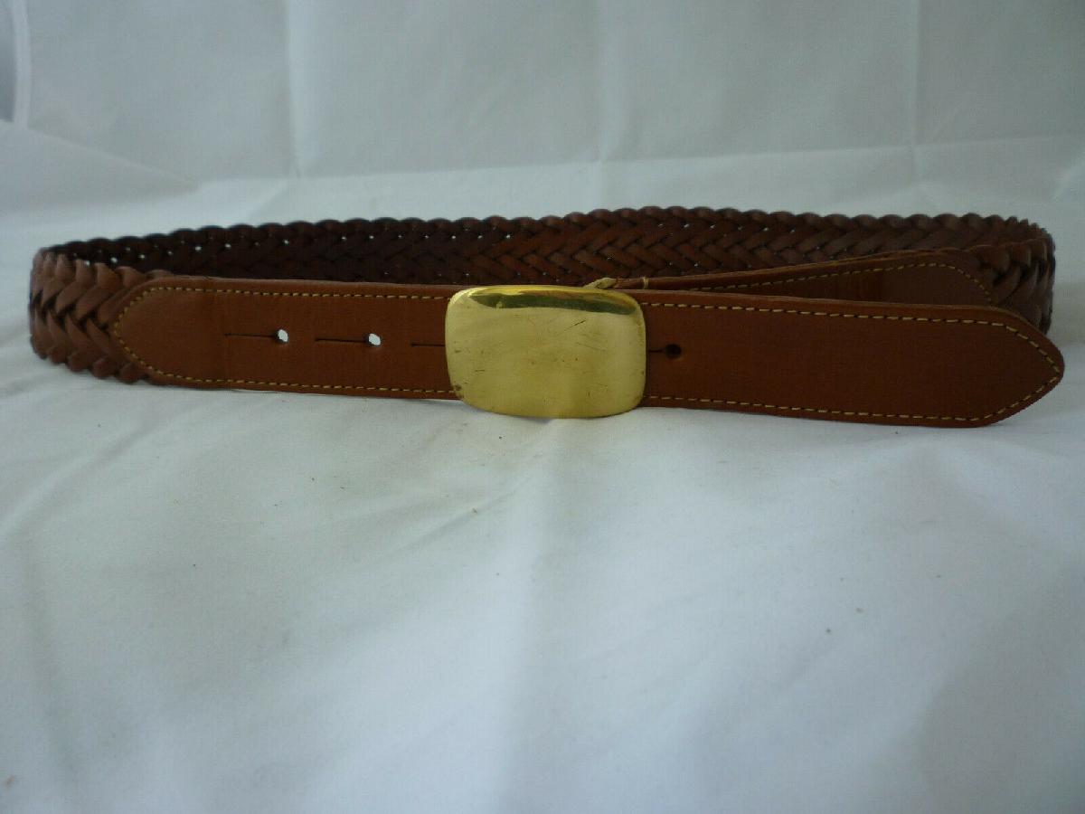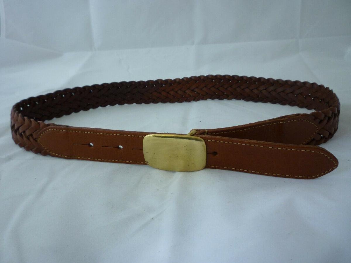 HARRODS BELT COMPANY BROWN PLAITED LEATHER BELT - UK MADE - NEW - 30 [ENDED]