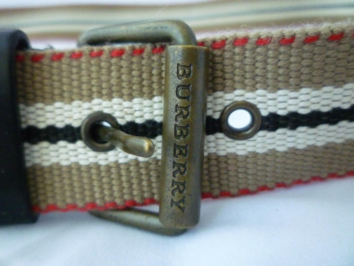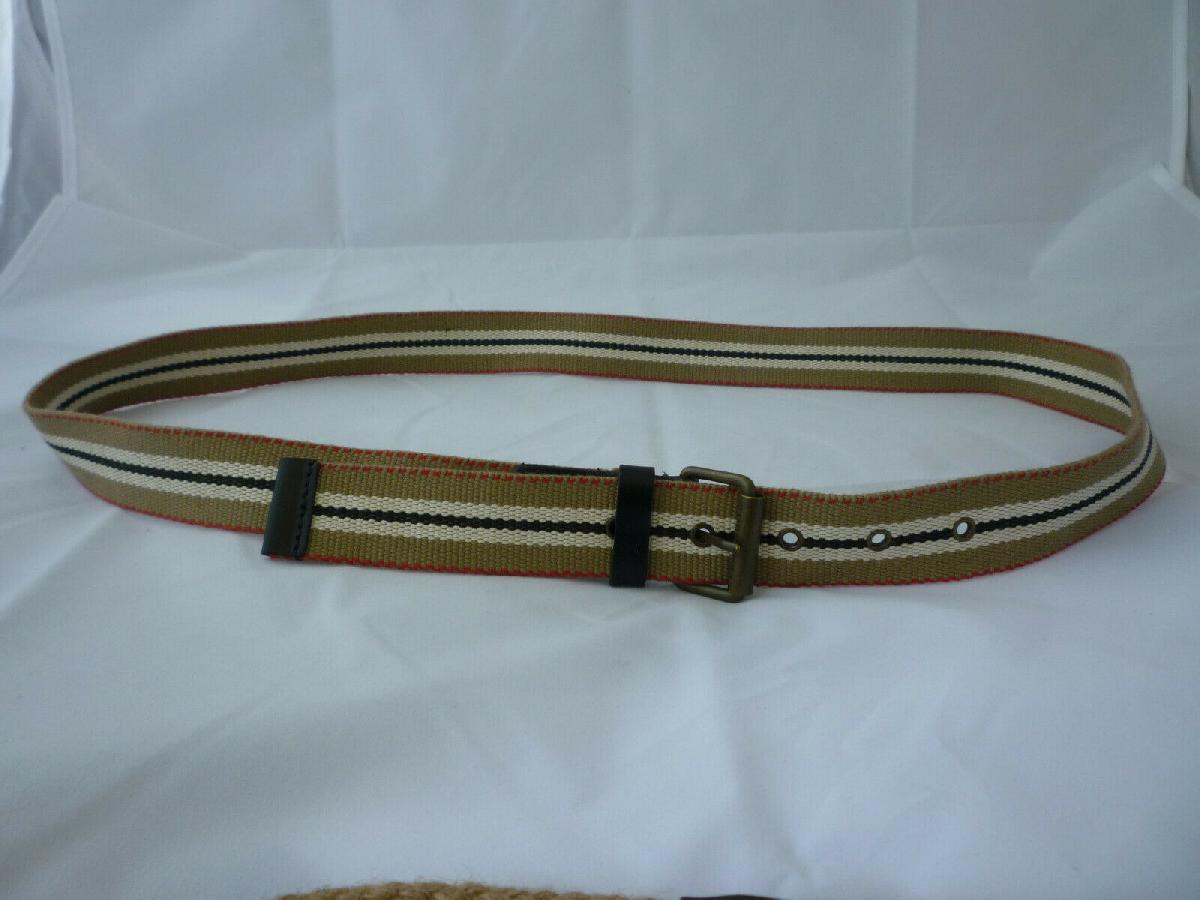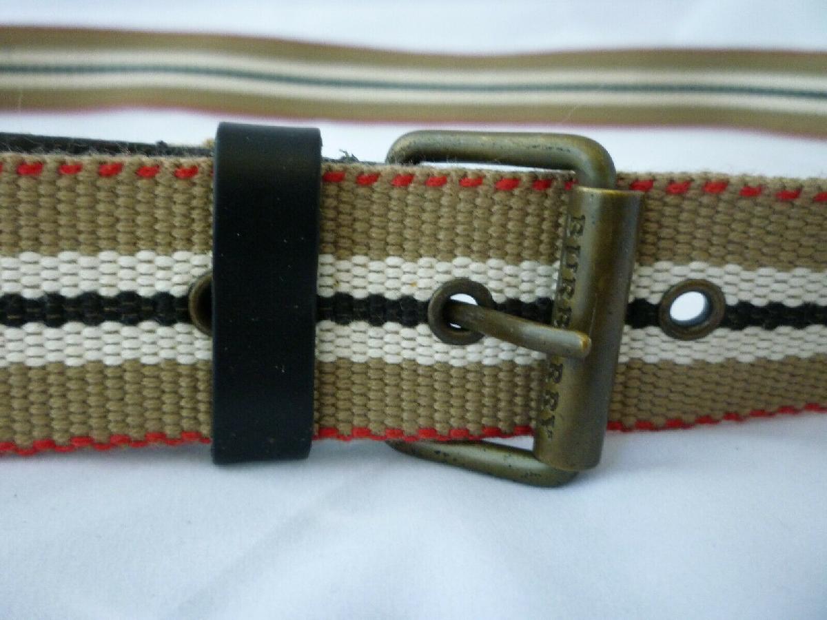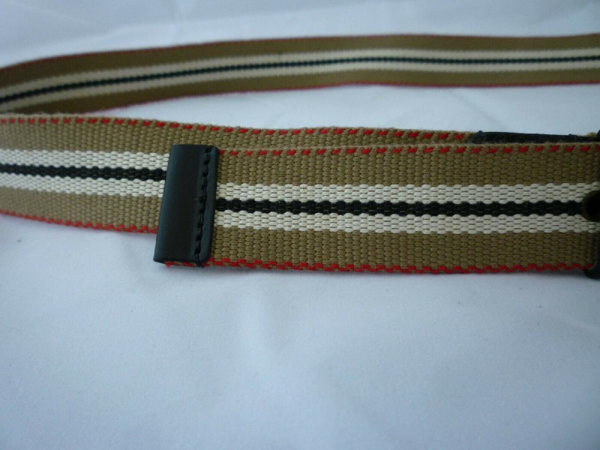 BURBERRY FABRIC & LEATHER BELT STRIPED BROWN BLACK WHITE UK MADE NEW - 36 - W36 [ENDED]