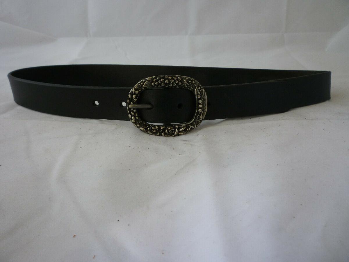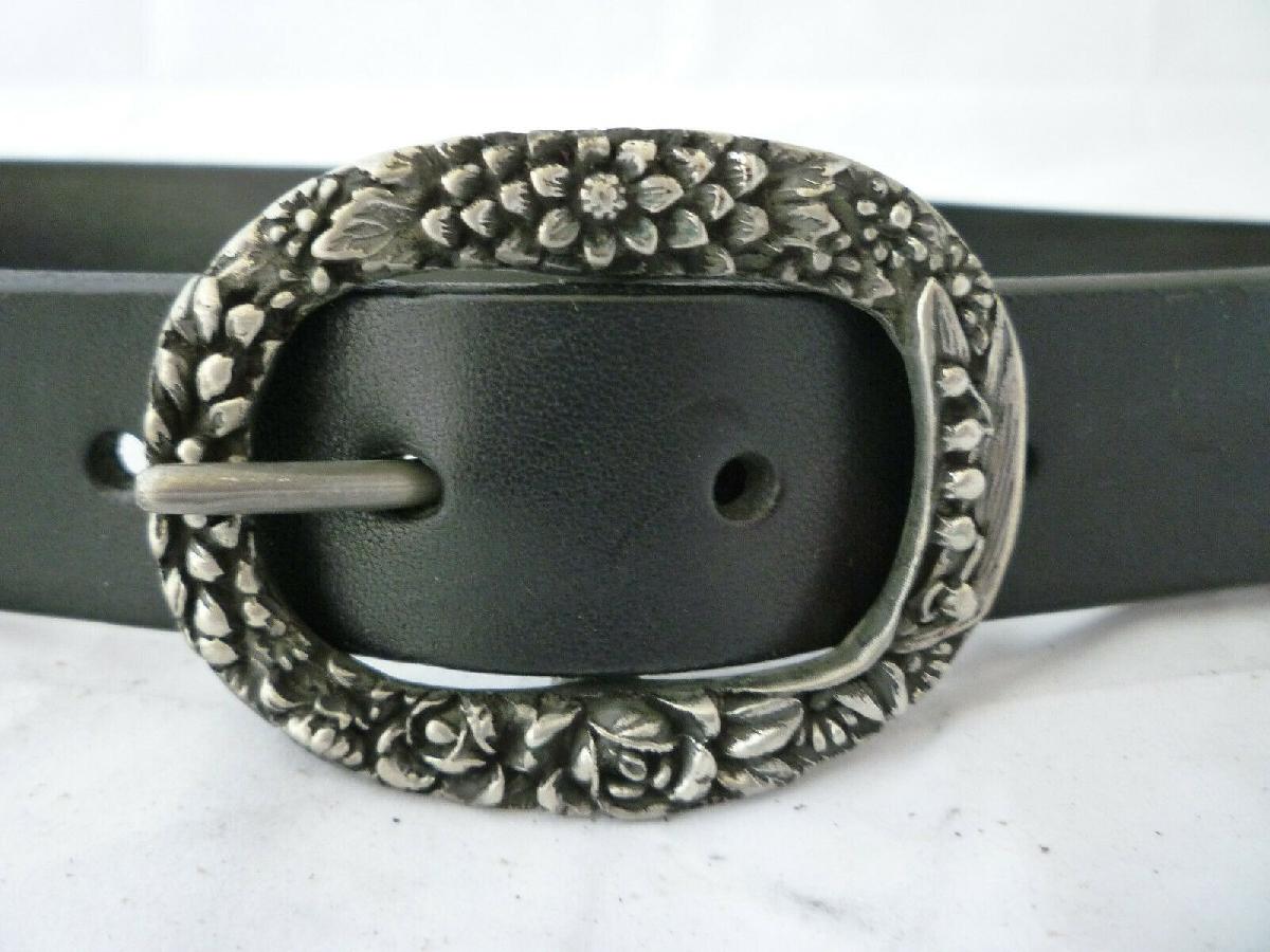 REGENT BELT COMPANY BLACK LEATHER BELT FLORAL BUCKLE UK MADE - NEW - 28 [ENDED]
