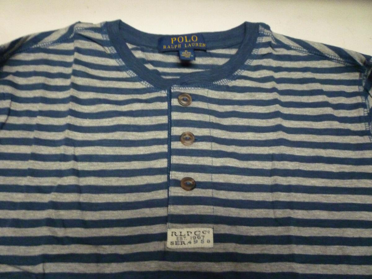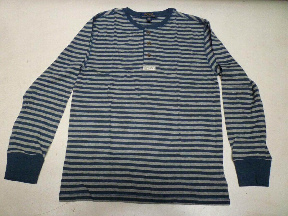 RALPH LAUREN POLO BOYS STRIPED GREY BLUE CREW NECK LONG SLEEVES LOGO T-SHIRT TOP [ENDED]