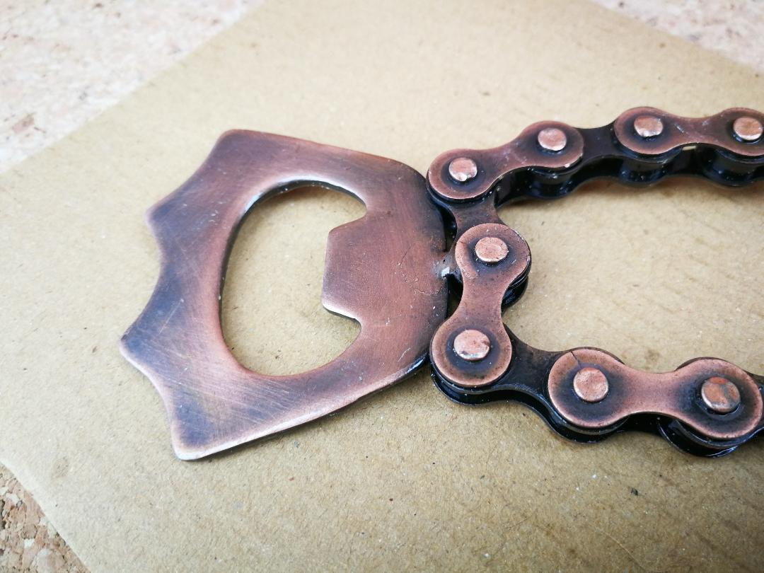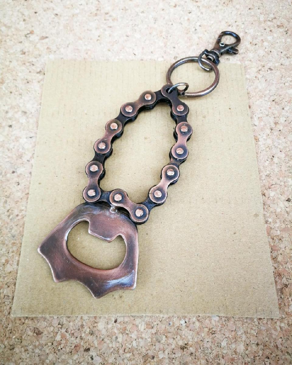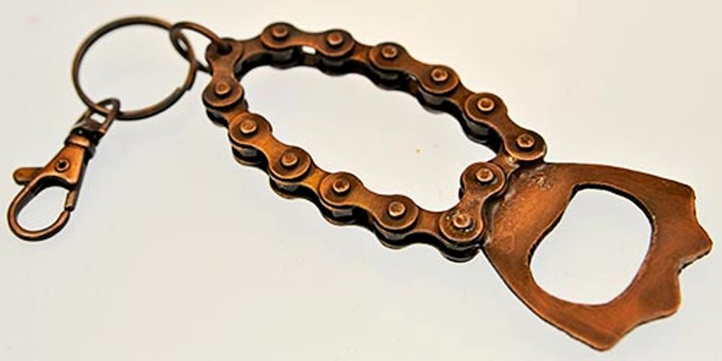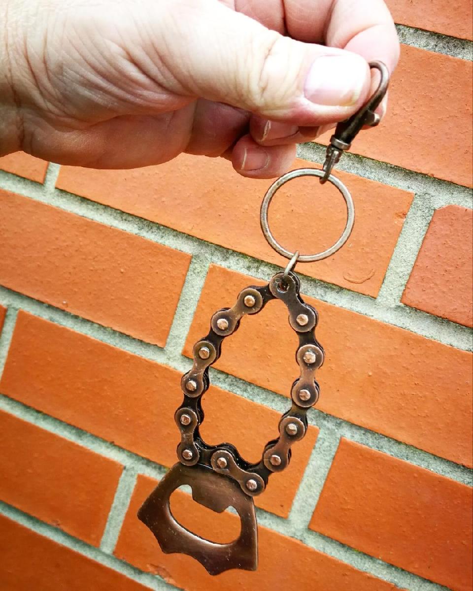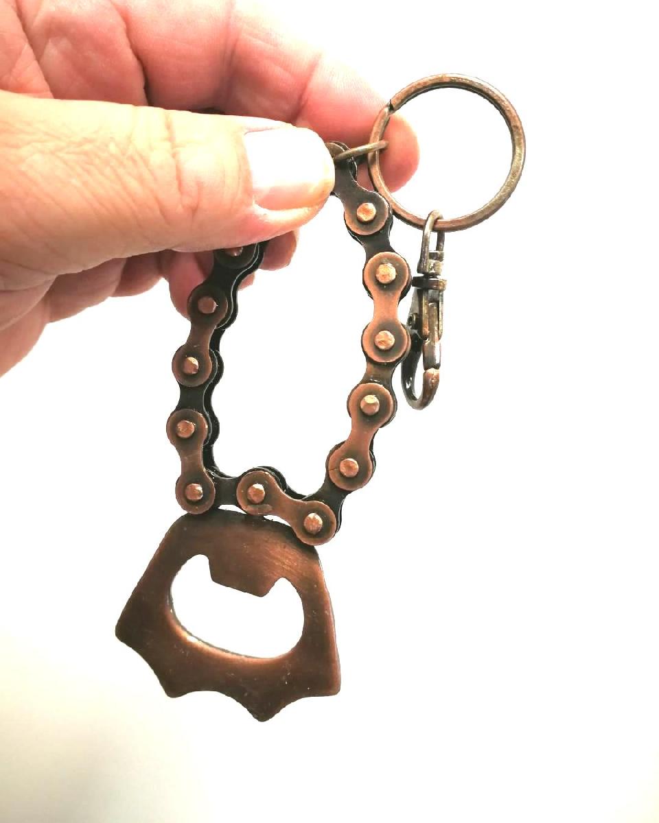 RECYCLED BIKE CHAIN KEY RING WITH BOTTLE TOP OPENER HANDMADE IN INDIA ECO GIFT [ENDED]