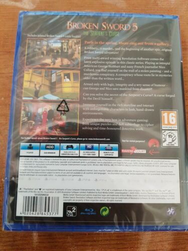 BROKEN SWORD 5: THE SERPENT'S CURSE PS4 - NEW AND SEALED [ENDED]