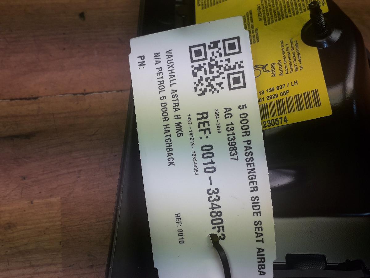 VAUXHALL ASTRA H MK5 2004-2010 5 DOOR PASSENGER SIDE SEAT AIRBAG 13139837 [ENDED]