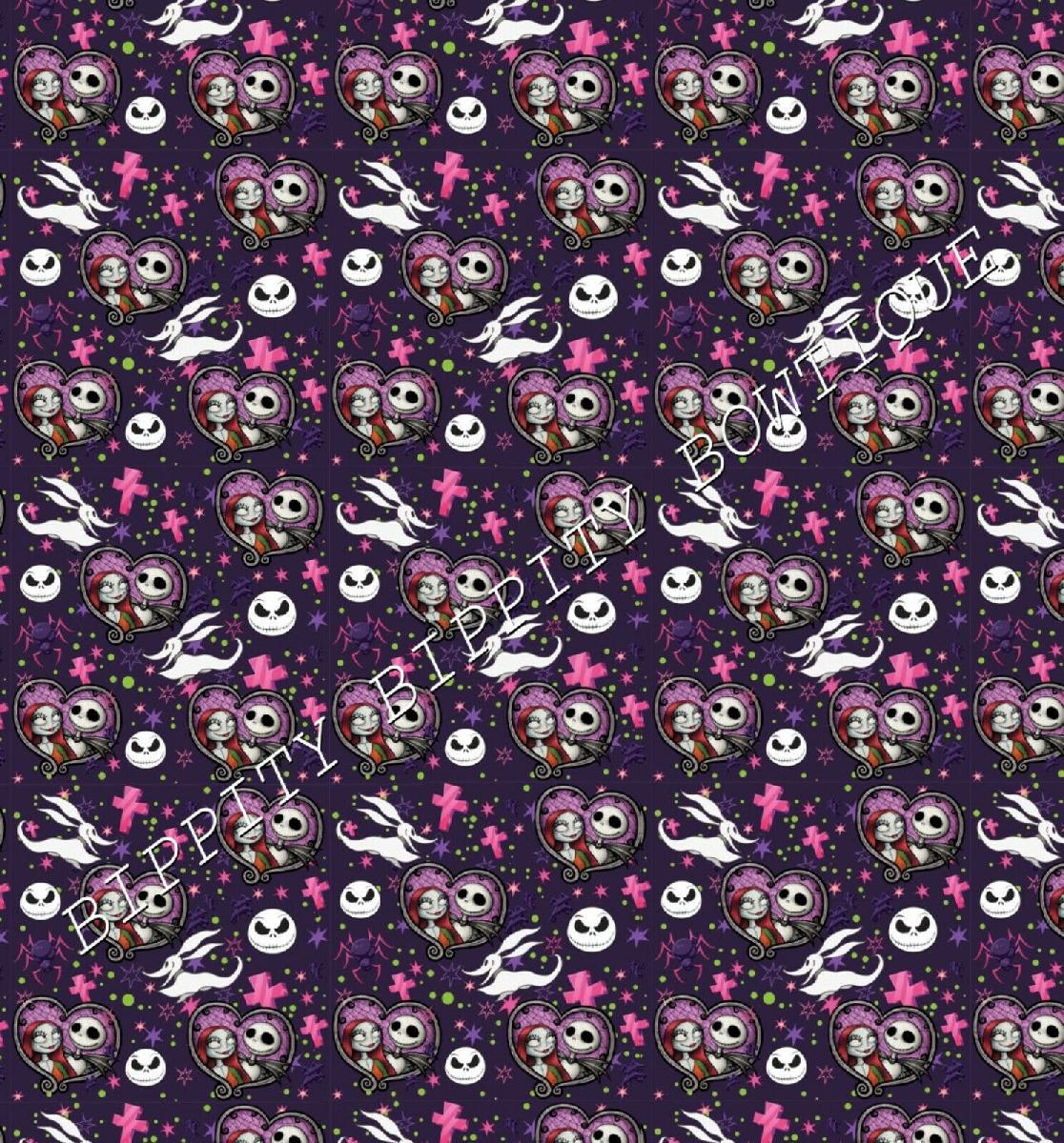 NEW "NIGHTMARE BEFORE CHRISTMAS" PRINTED CANVAS FABRIC SHEET..HAIR BOWS [ENDED]