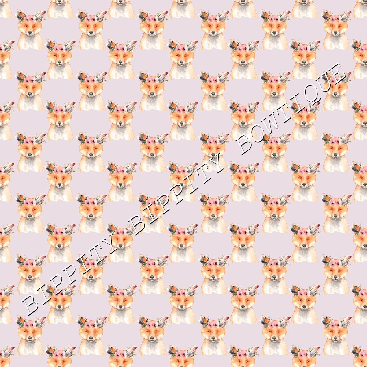 "FLORAL CROWN" WOODLAND ANIMALS PRINTED FABRIC SHEET.HAIR BOWS, EXCLUSIVE [ENDED]