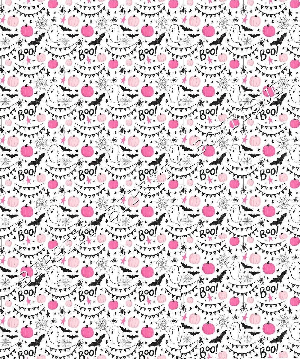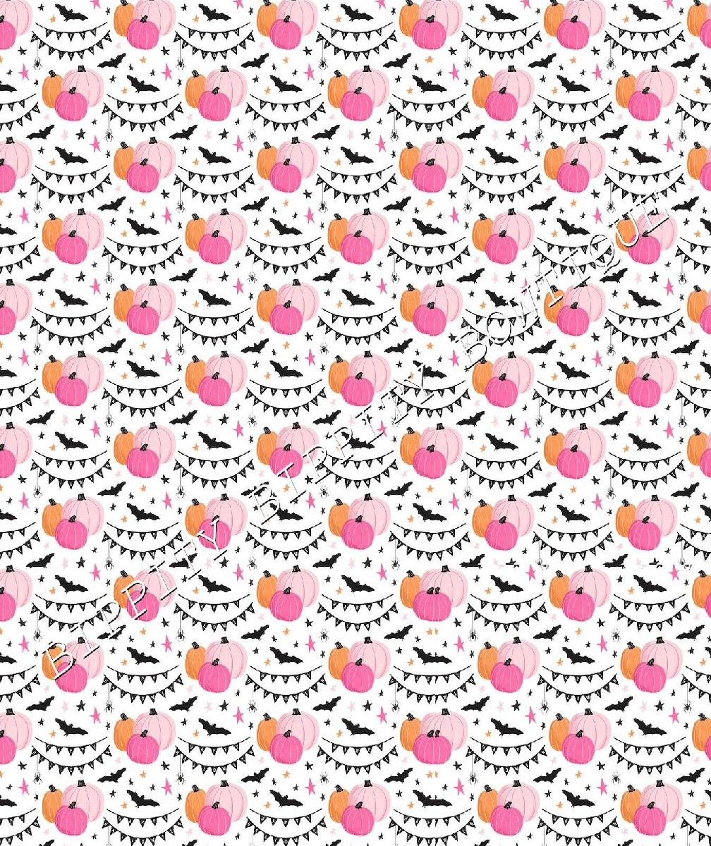 GORGEOUS "PINK HALLOWEEN" HALLOWEEN CANVAS PRINTED FABRIC SHEET..HAIR BOWS [ENDED]
