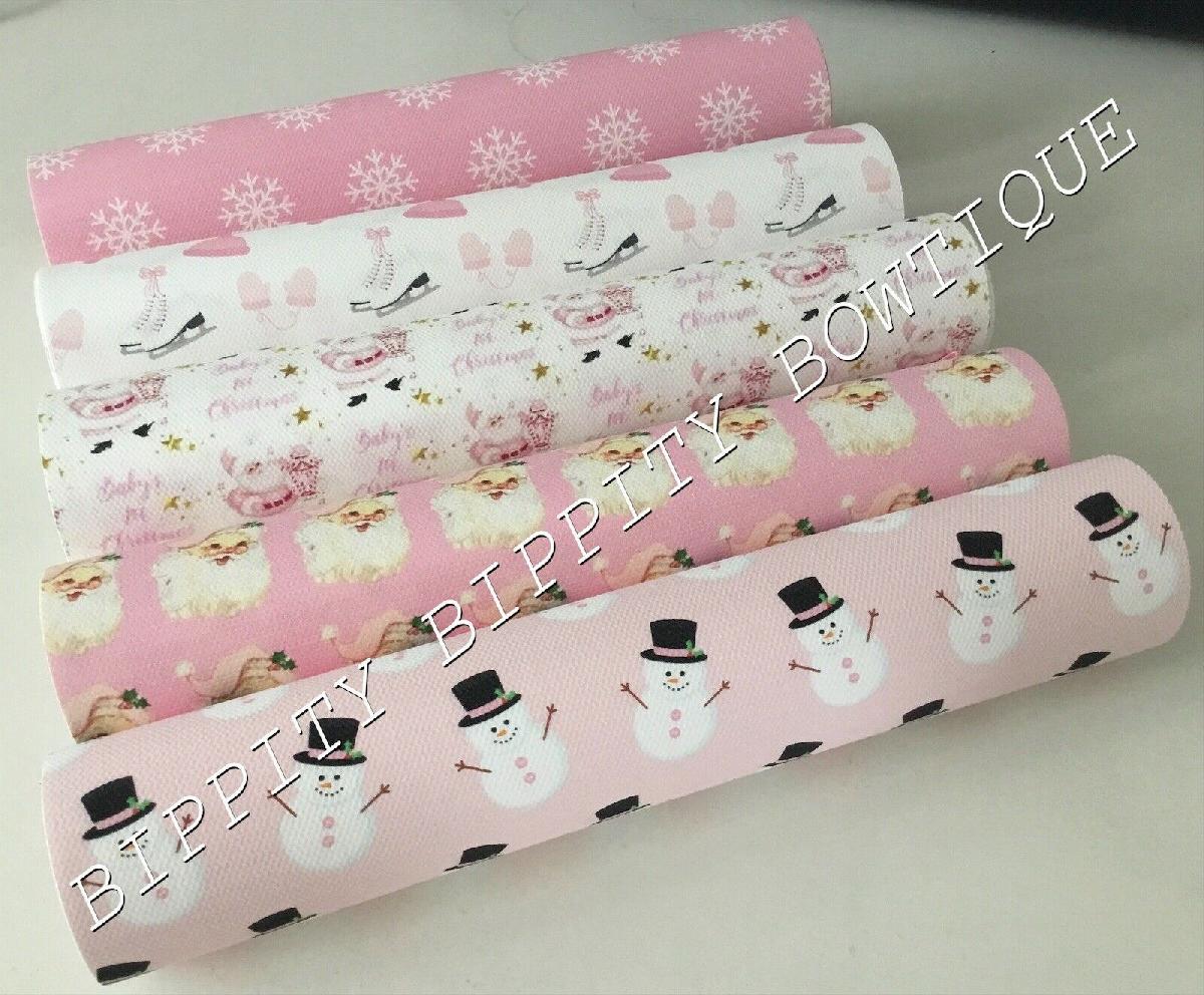SPECIAL OFFER PACK OF 5 PINK CHRISTMAS PRINTED CANVAS FABRIC SHEETS HAIR BOWS [ENDED]