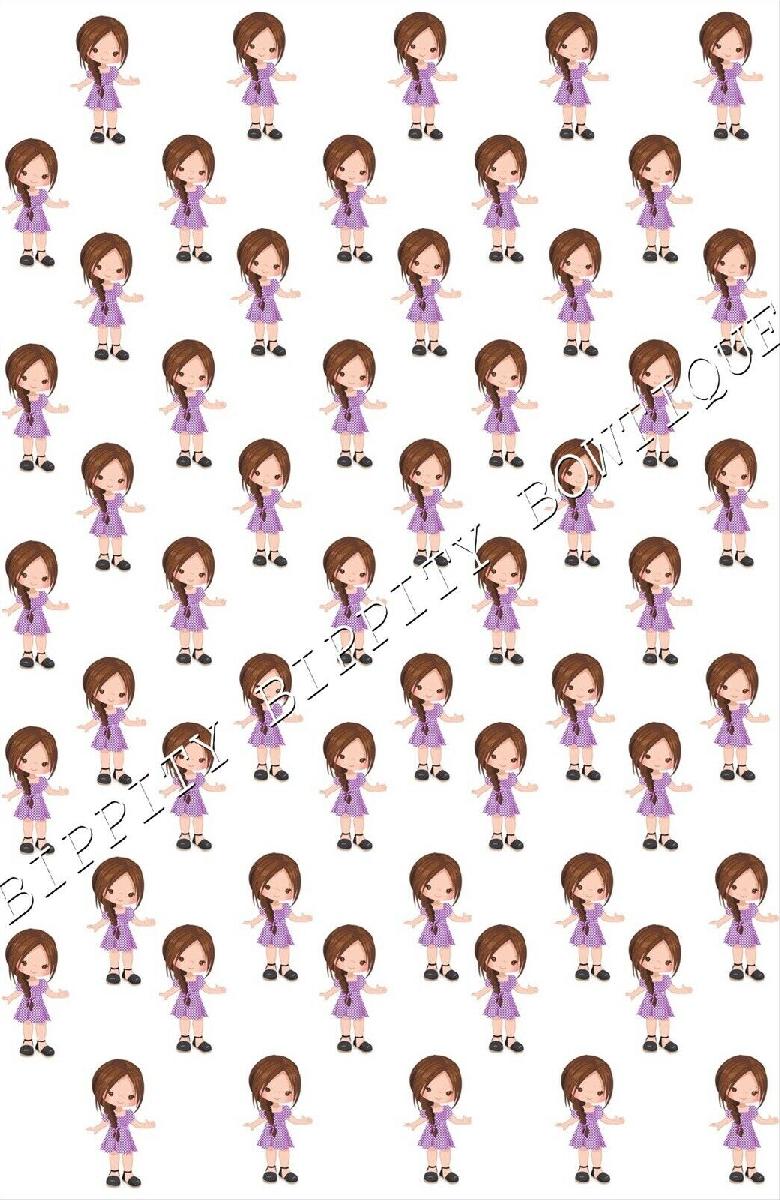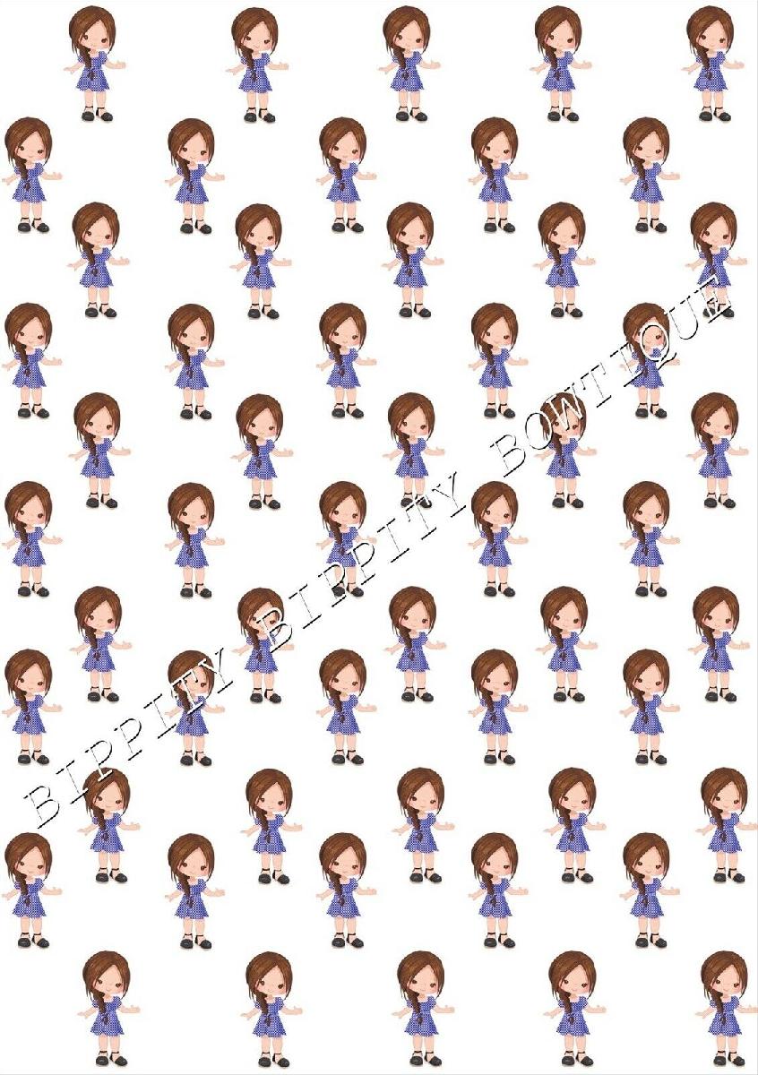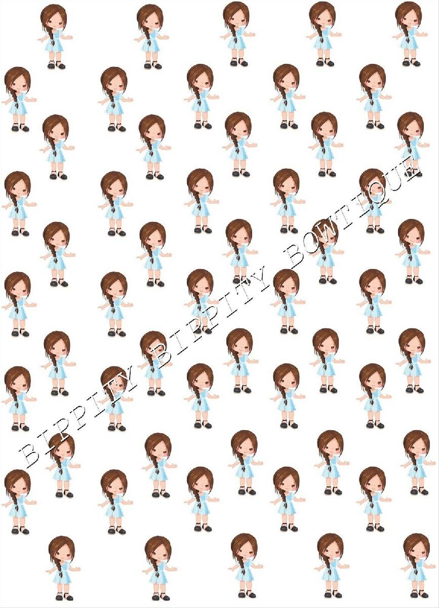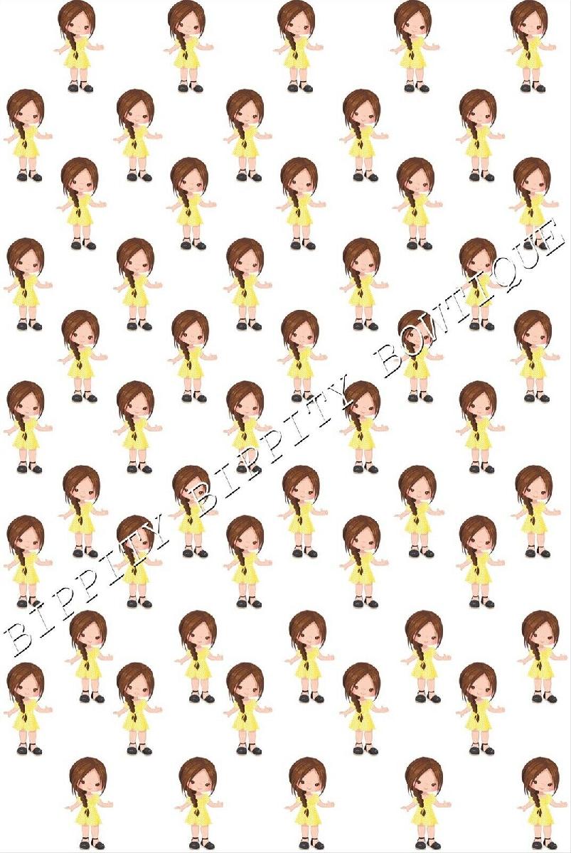 "SCHOOL GIRLS GINGHAM DRESS" BROWN HAIR CANVAS FABRIC SHEET.. BOWS, EXCLUSIVE [ENDED]