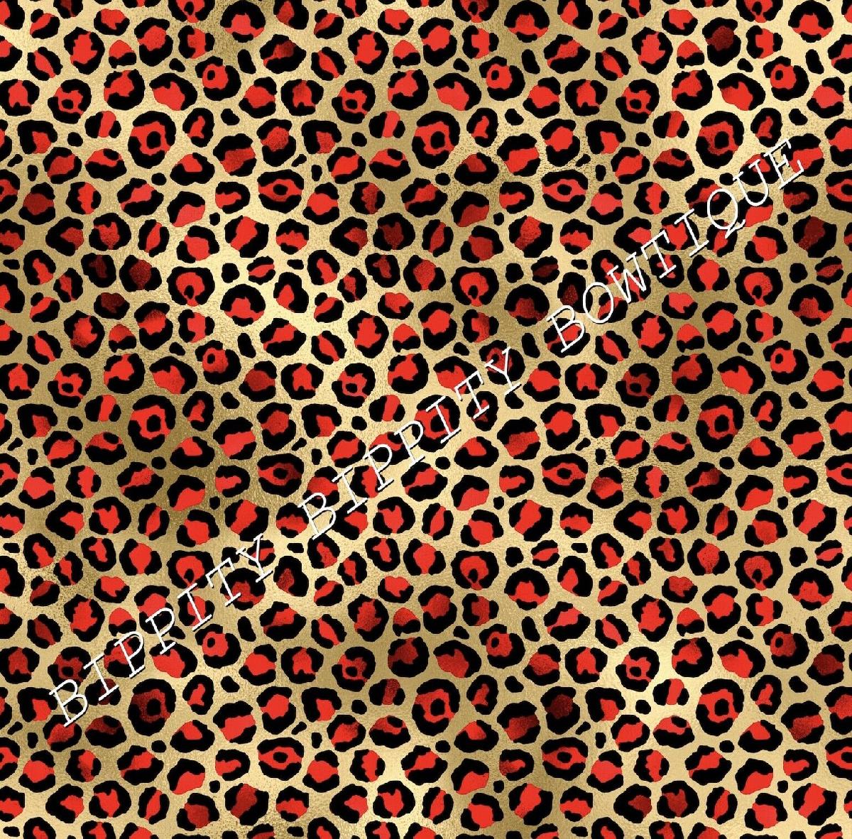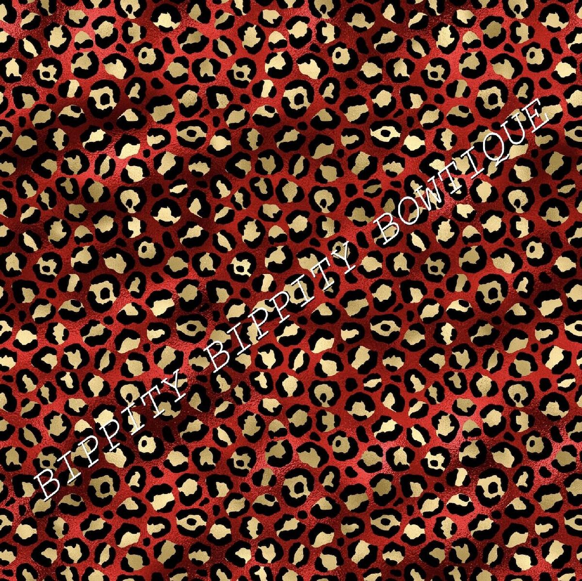 GORGEOUS RED & GOLD CHRISTMAS "LEOPARD PRINT" PRINTED CANVAS FABRIC HAIR BOWS [ENDED]