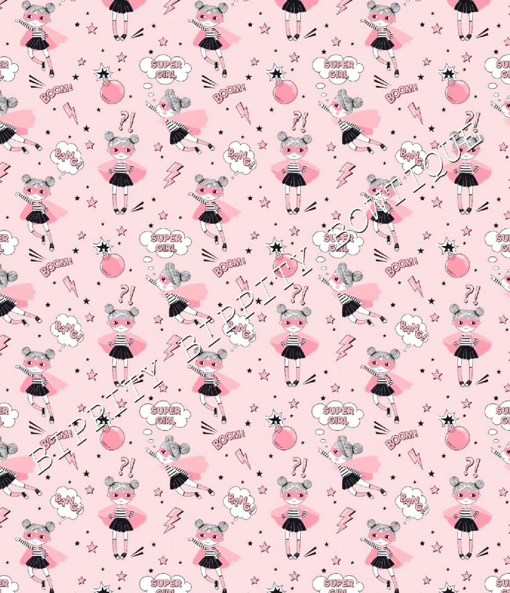 GORGEOUS "PINK SUPER HERO GIRL" CANVAS PRINTED FABRIC SHEET, HAIR BOWS [ENDED]