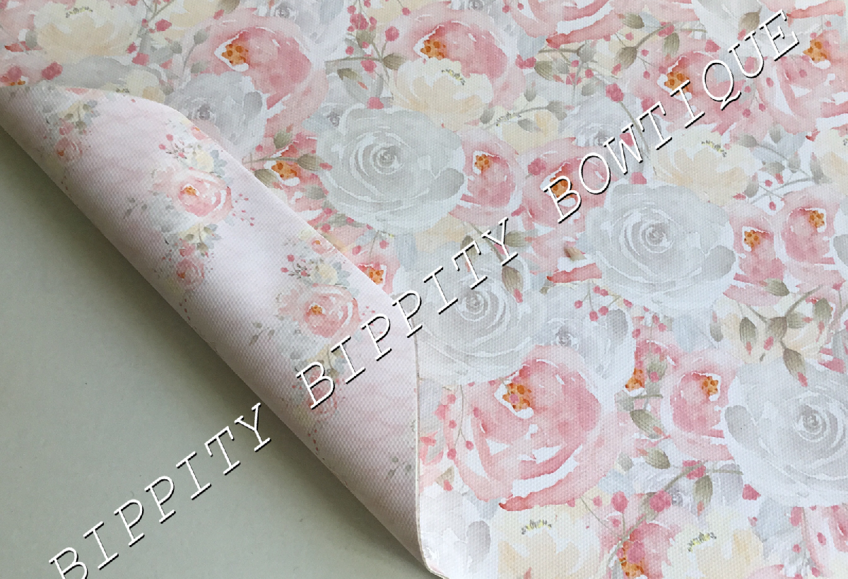 DOUBLE SIDED ROSE PINK & GREY FLORAL PRINTED FABRIC SHEET..HAIR BOWS CRAFTS [ENDED]