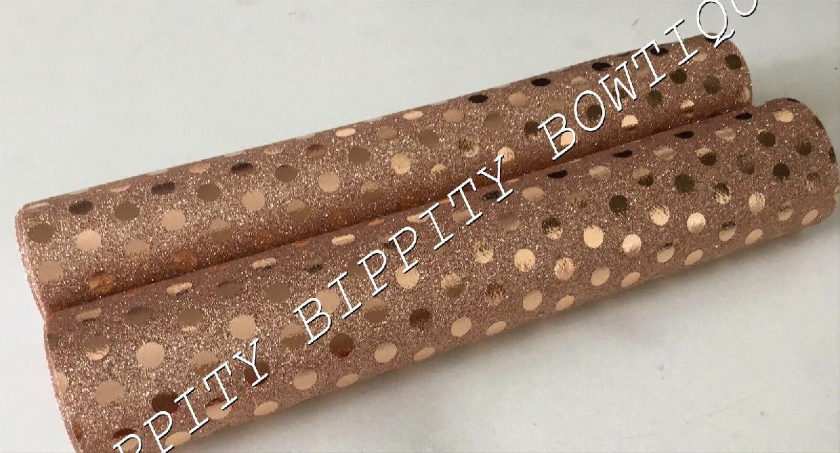 GORGEOUS ROSE GOLD "POLKA DOT" FINE GLITTER LEATHERETTE SHEET HAIR BOWS [ENDED]