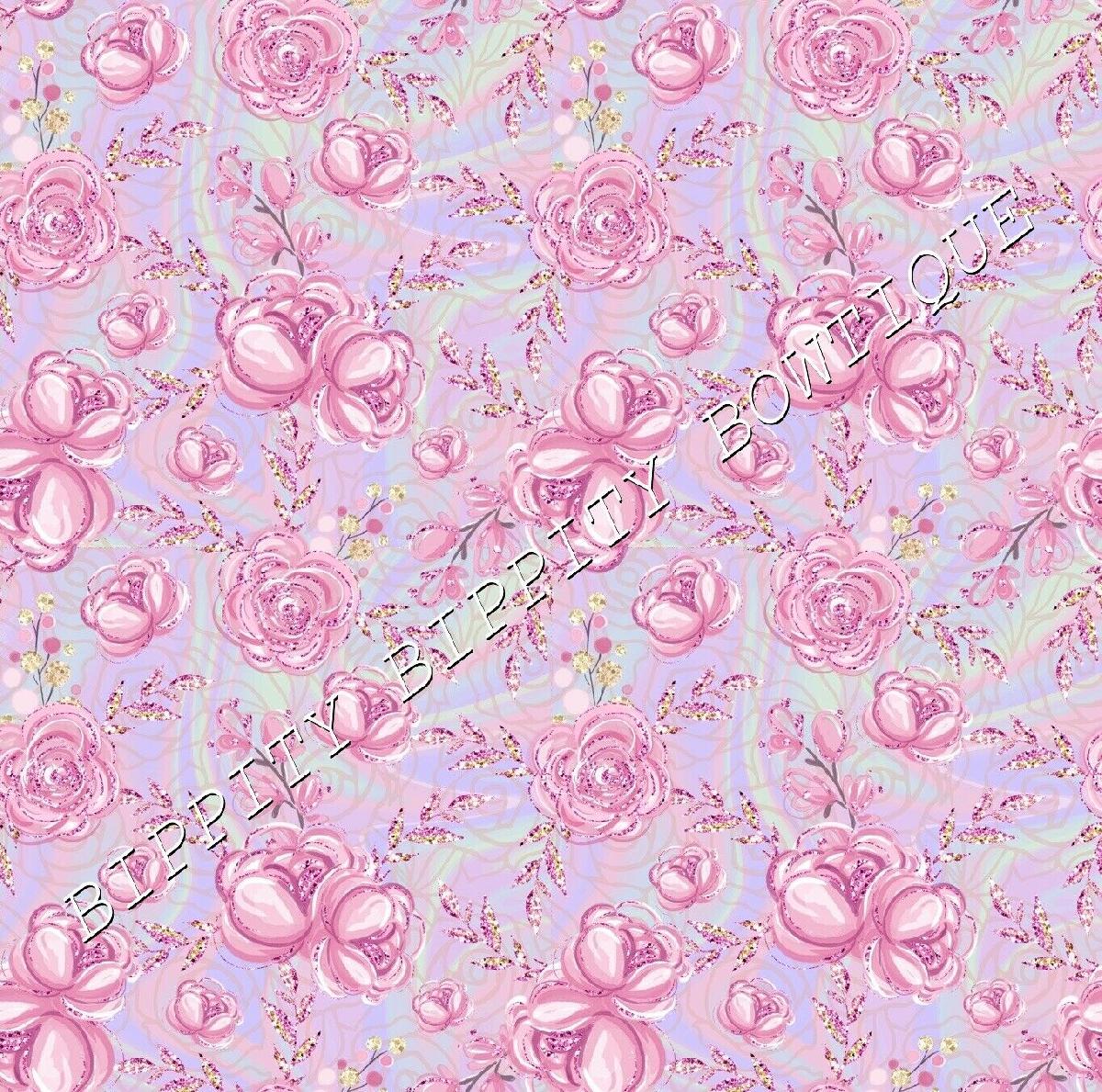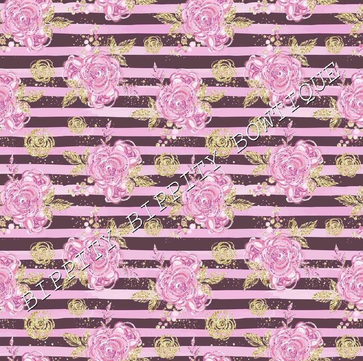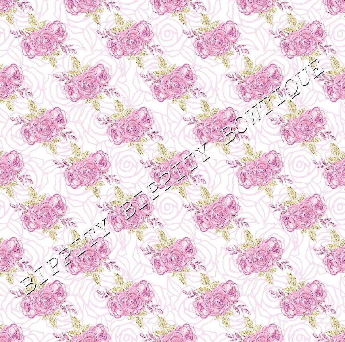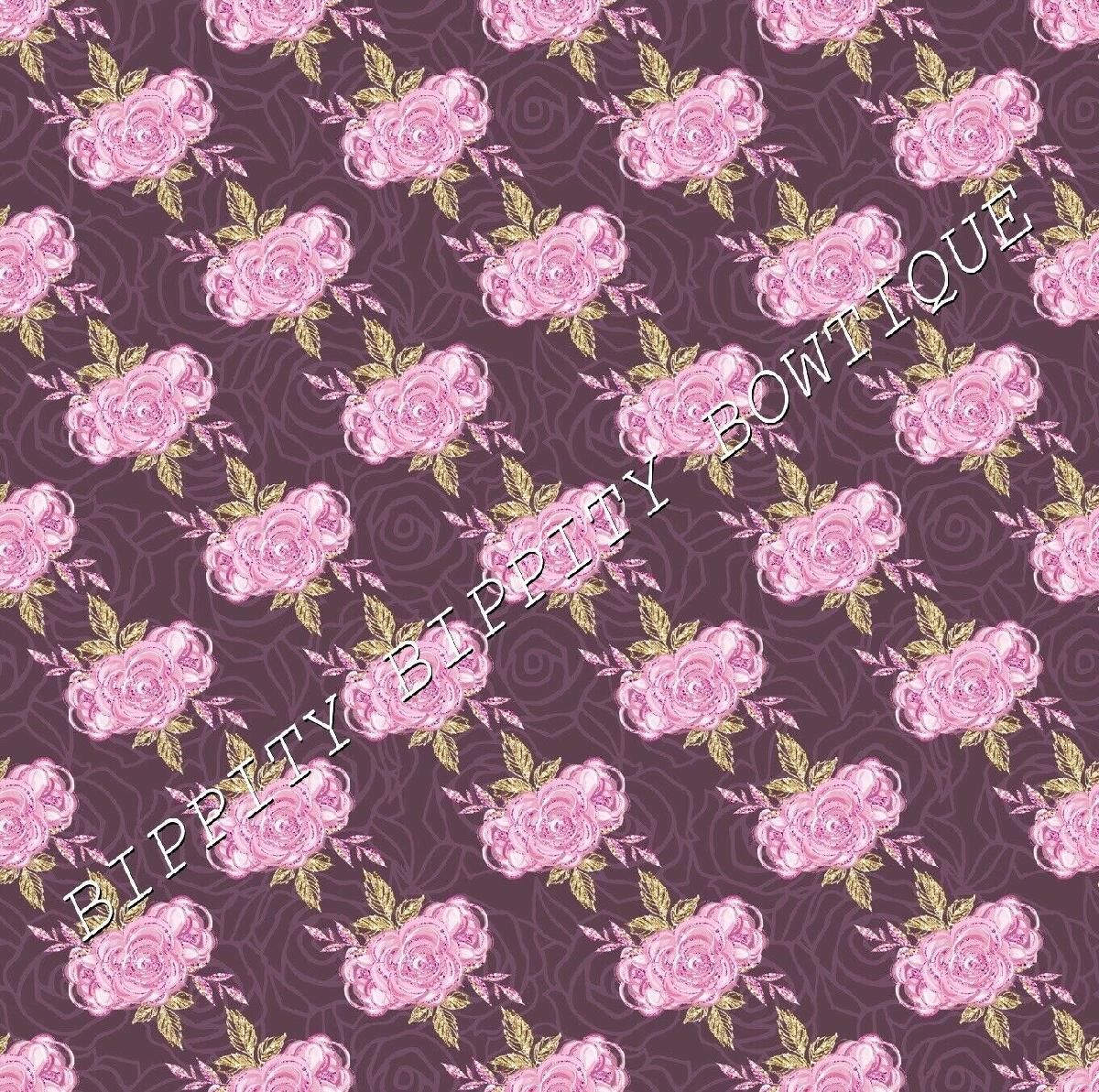 LUXURY "LILAC & GOLD" FLORAL ROSE PRINTED FABRIC SHEET..HAIR BOWS, GLITTER, [ENDED]