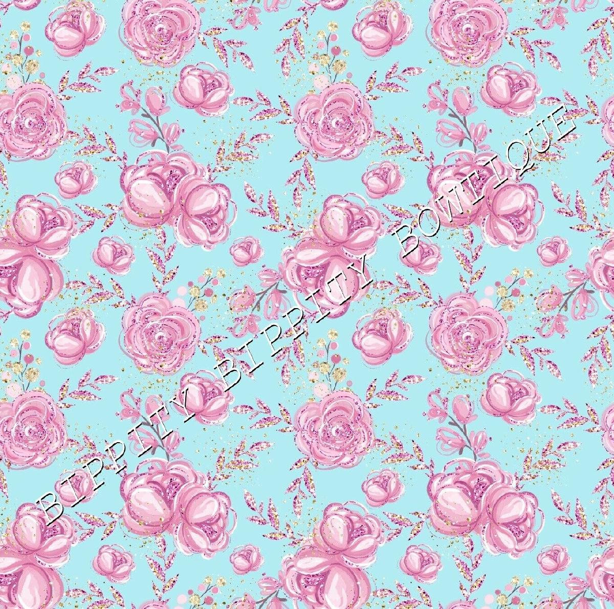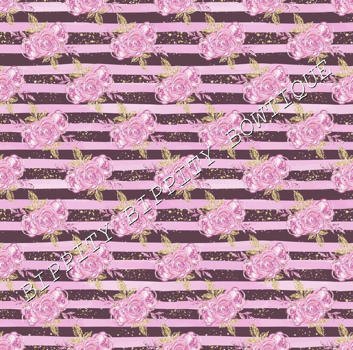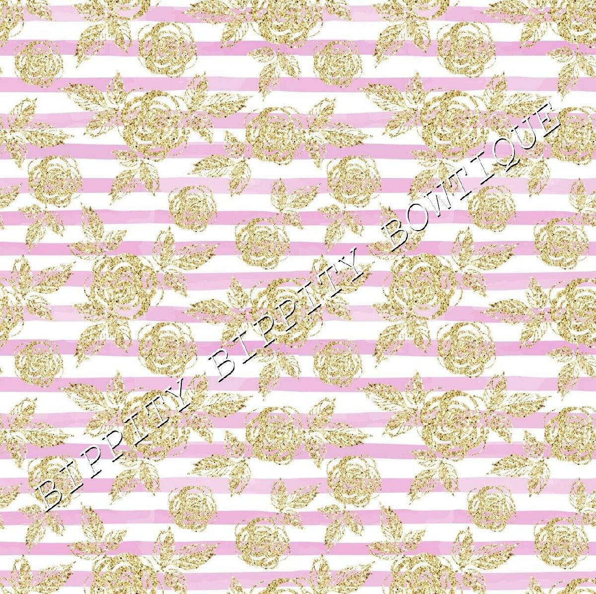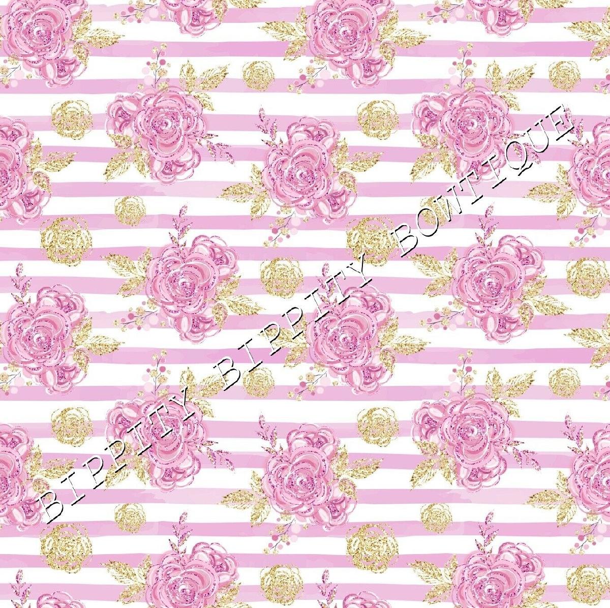 LUXURY "LILAC & GOLD" FLORAL ROSE PRINTED FABRIC SHEET..HAIR BOWS, GLITTER, [ENDED]
