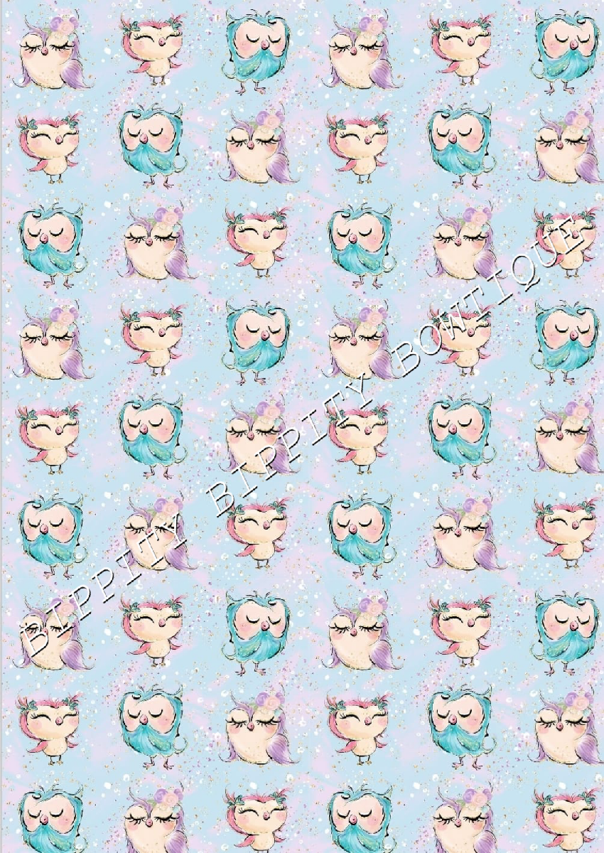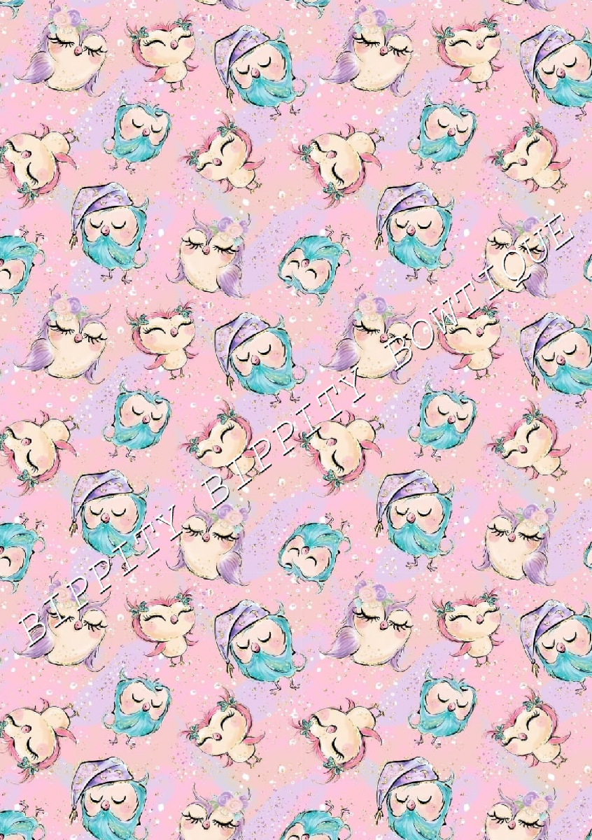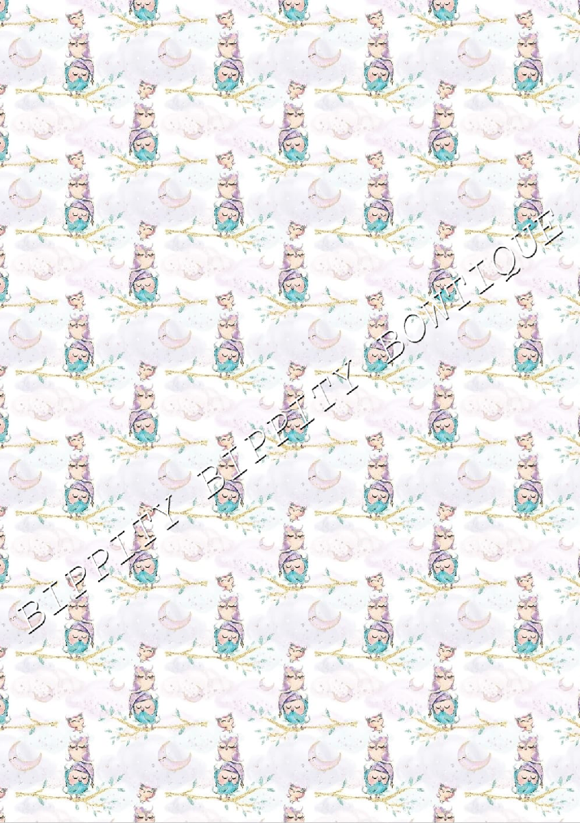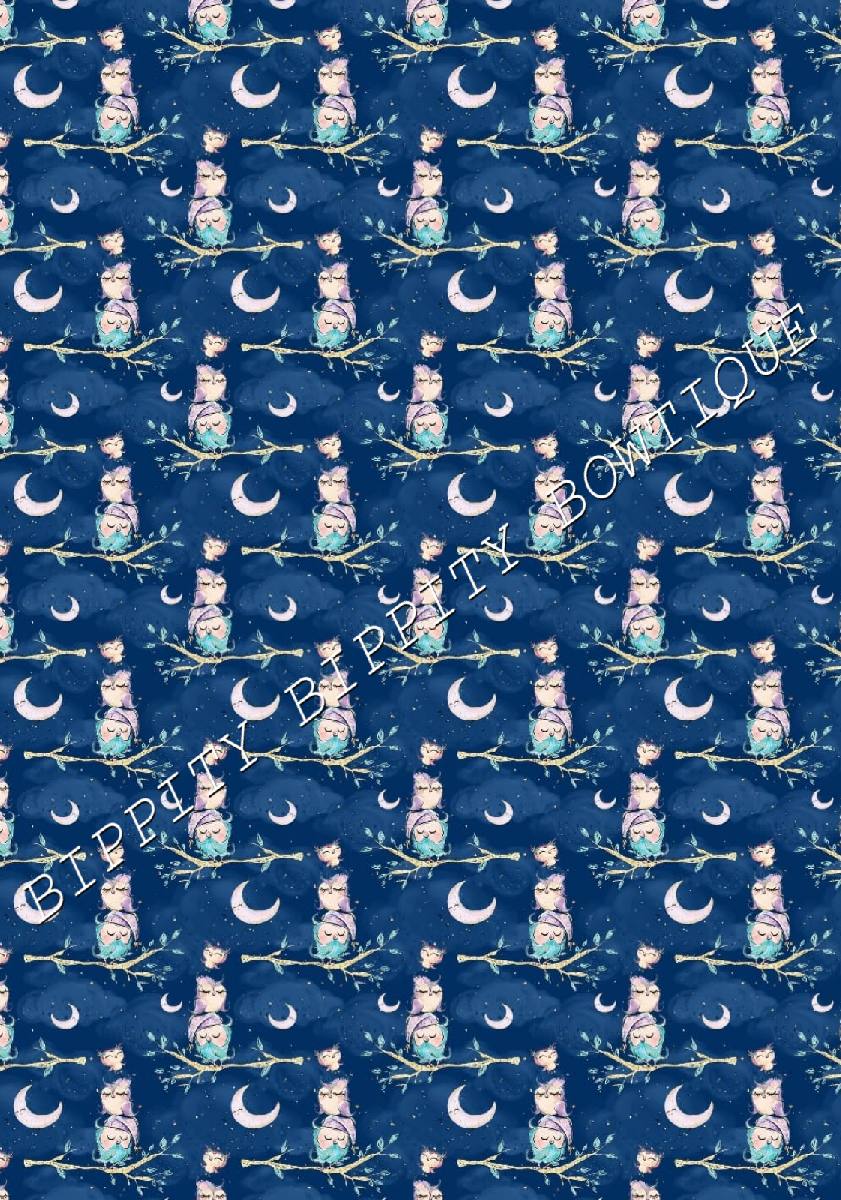 GORGEOUS "NIGHT OWLS " WATERCOLOUR CANVAS PRINTED FABRIC SHEET.HAIR BOWS CRAFTS [ENDED]