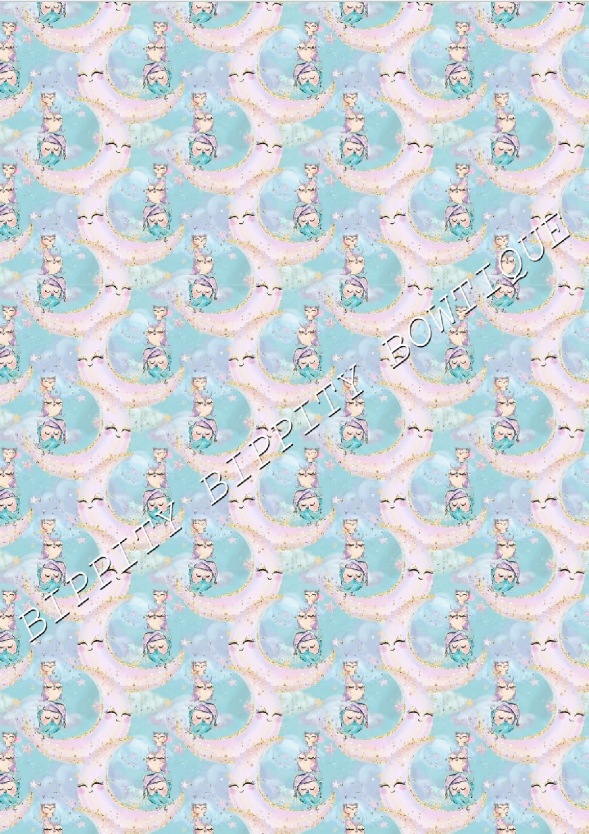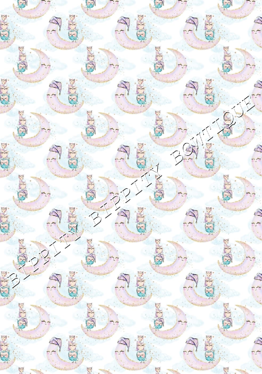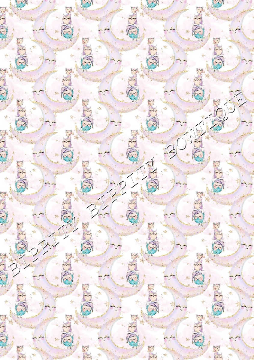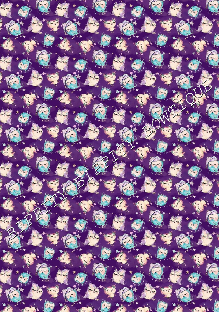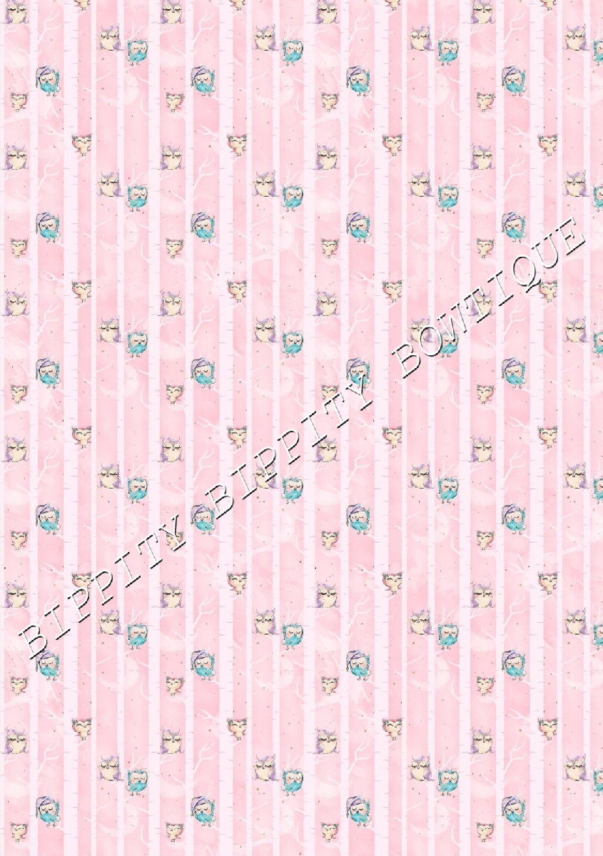 GORGEOUS "NIGHT OWLS " WATERCOLOUR CANVAS PRINTED FABRIC SHEET.HAIR BOWS CRAFTS [ENDED]