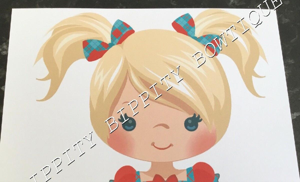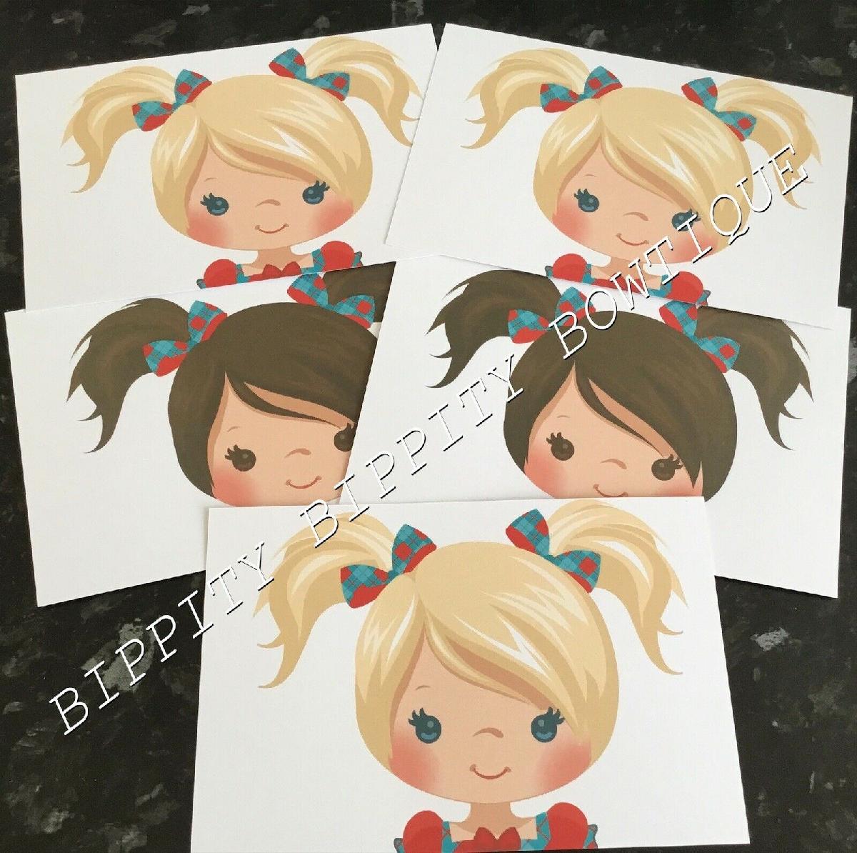 20 A6 MATT PRINTED "LITTLE GIRL" PIGTAIL 2 BOW HAIR BOW DISPLAY CARDS/HOLDERS. [ENDED]
