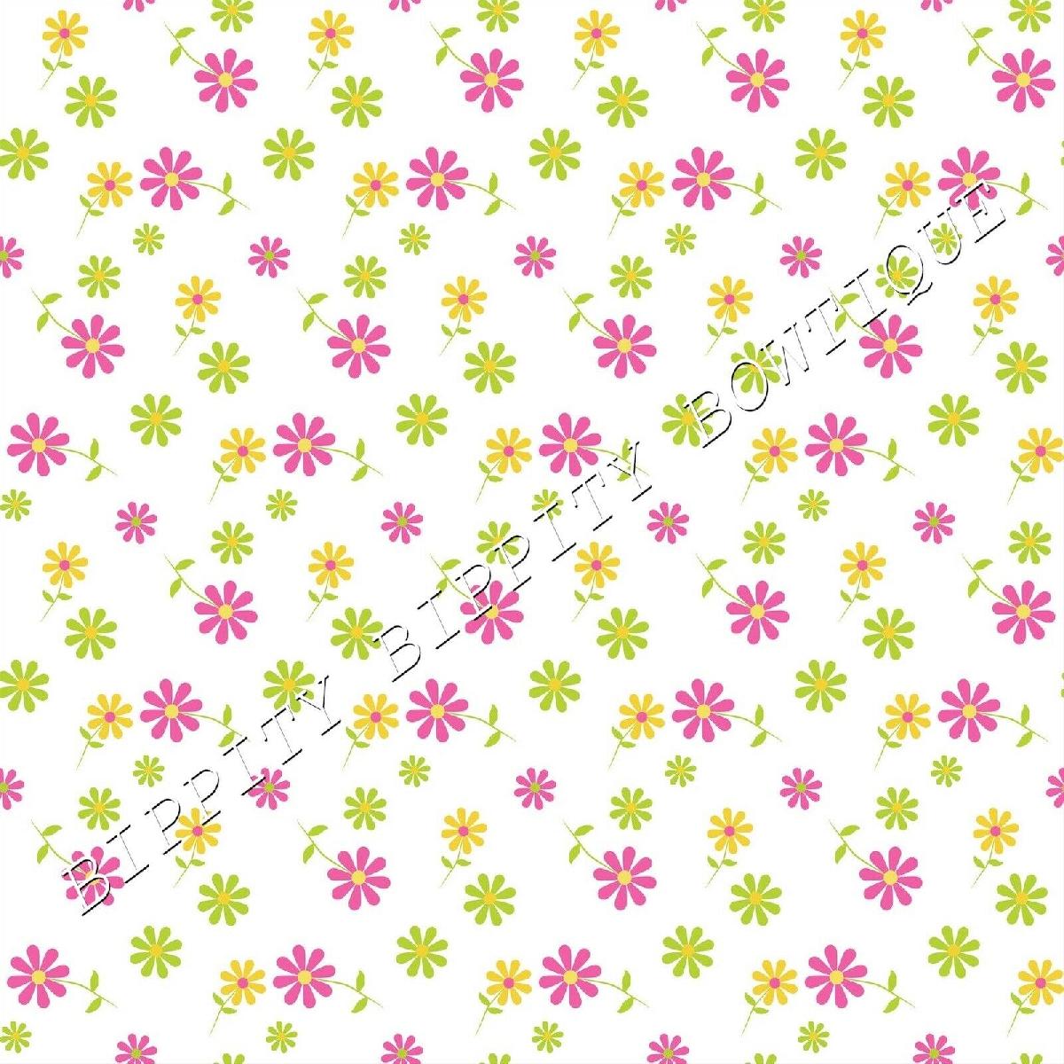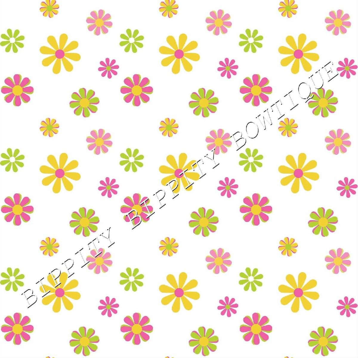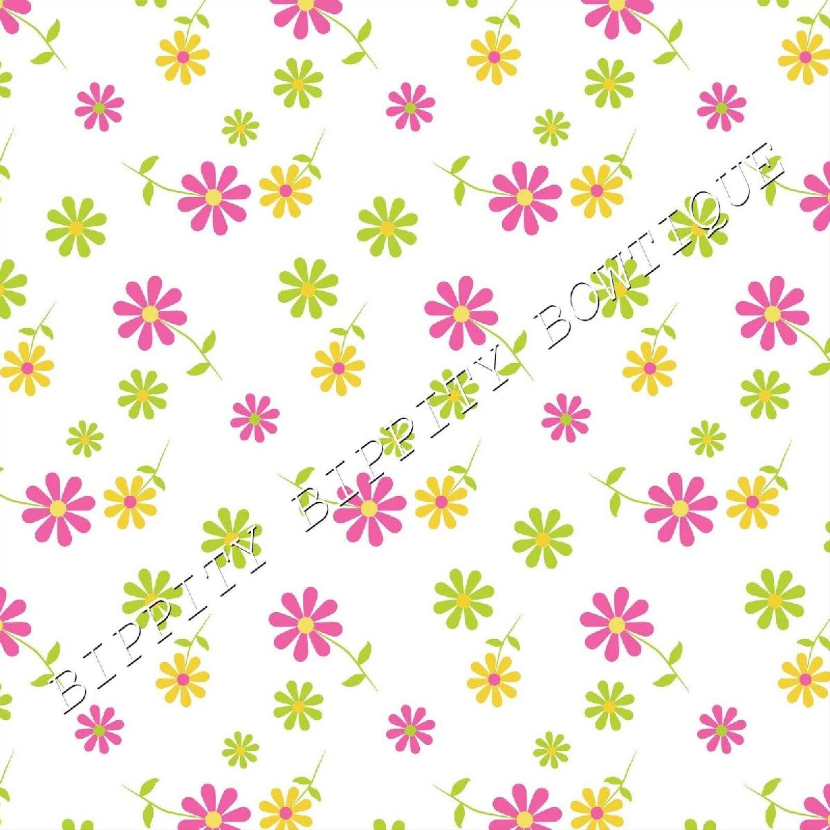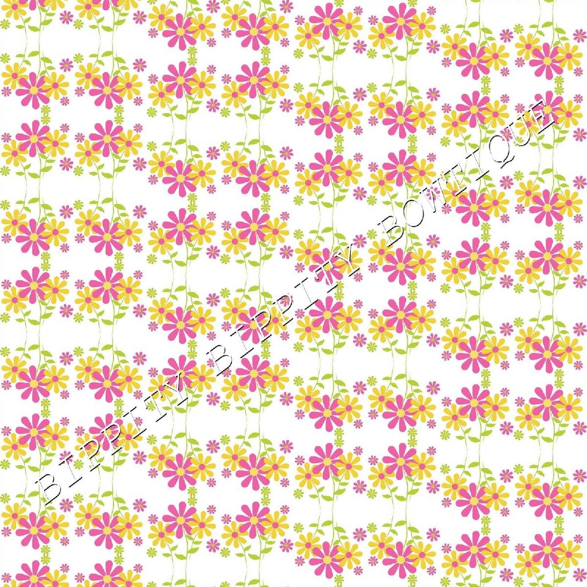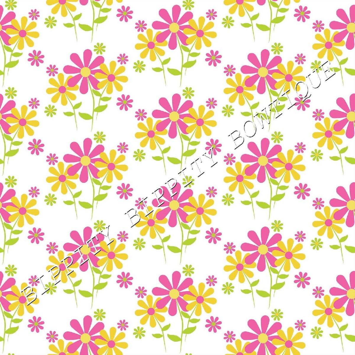 GORGEOUS "BRIGHT SUMMER DAISIES" PINK CANVAS PRINTED FABRIC SHEET HAIR BOWS [ENDED]