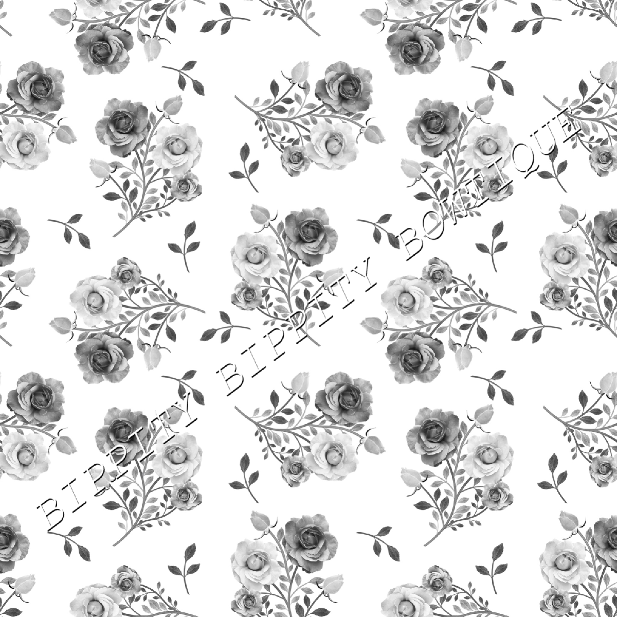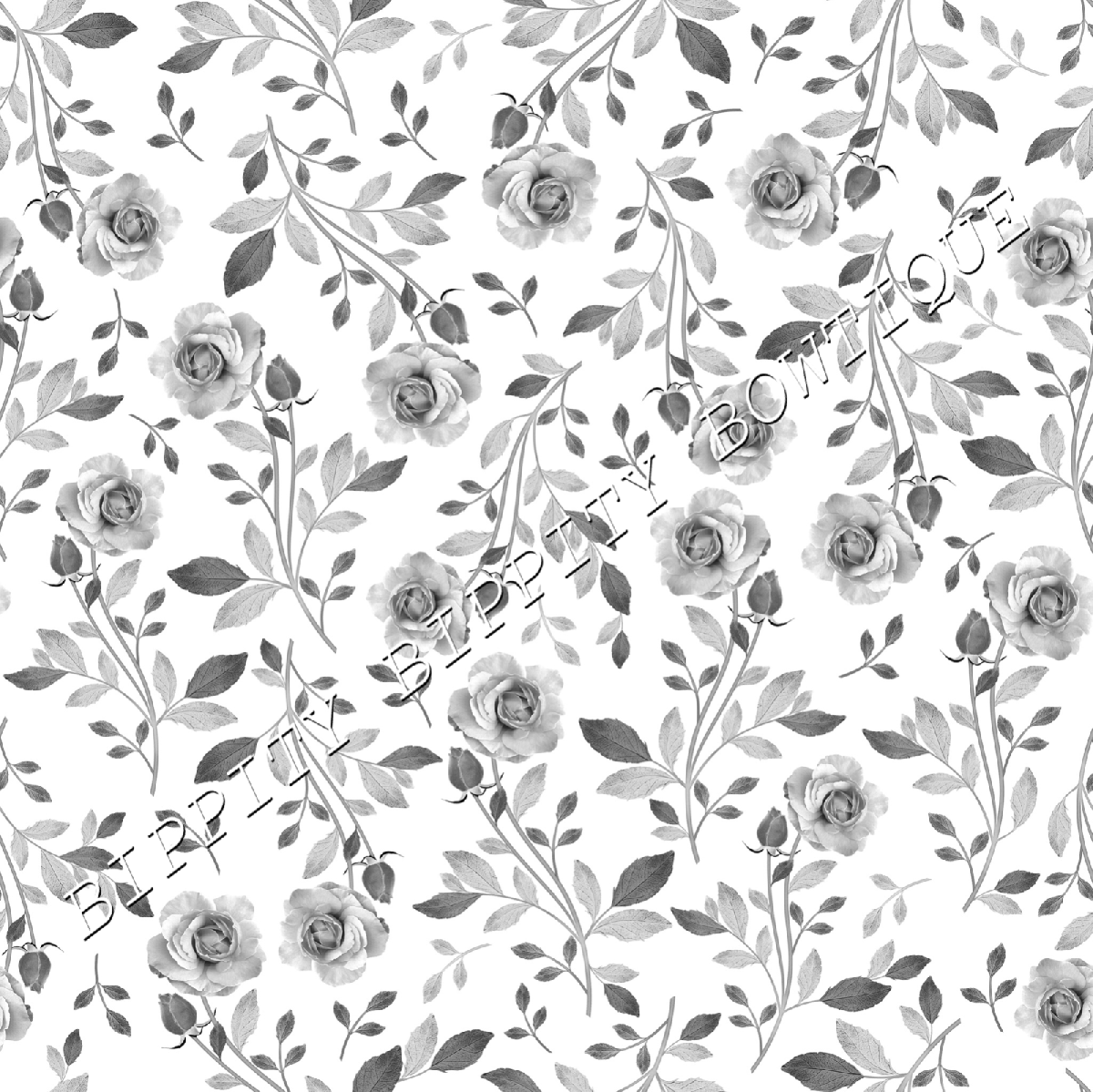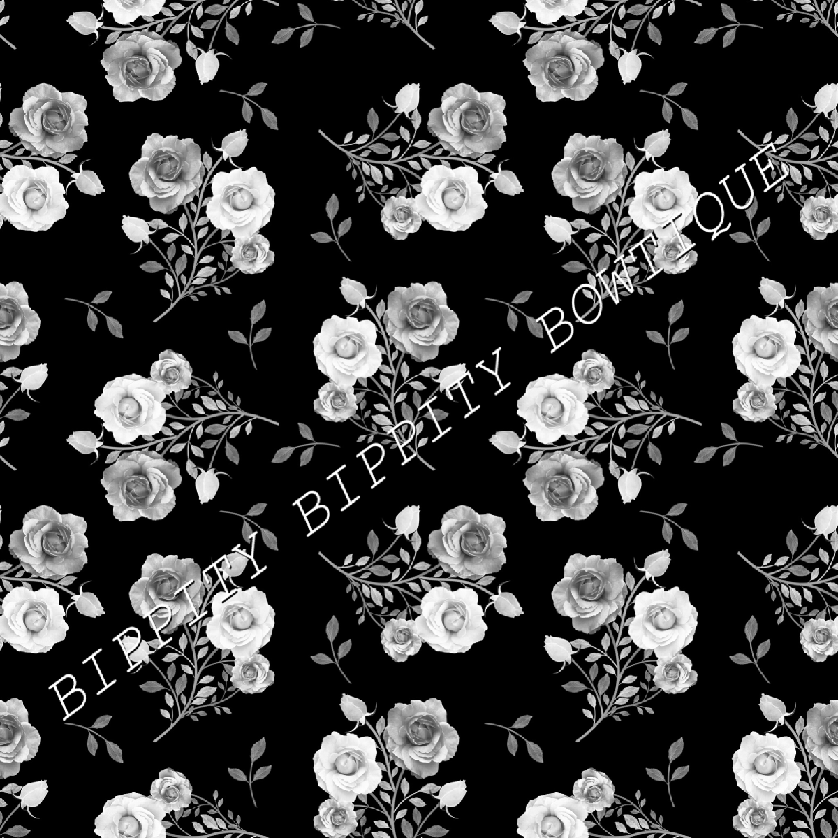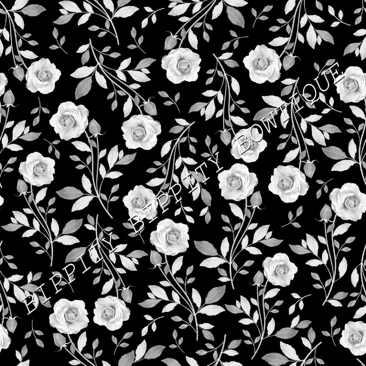 GORGEOUS "MONOCHROME FLORAL" PRINTED FABRIC SHEET..HAIR BOWS, GLITTER, [ENDED]
