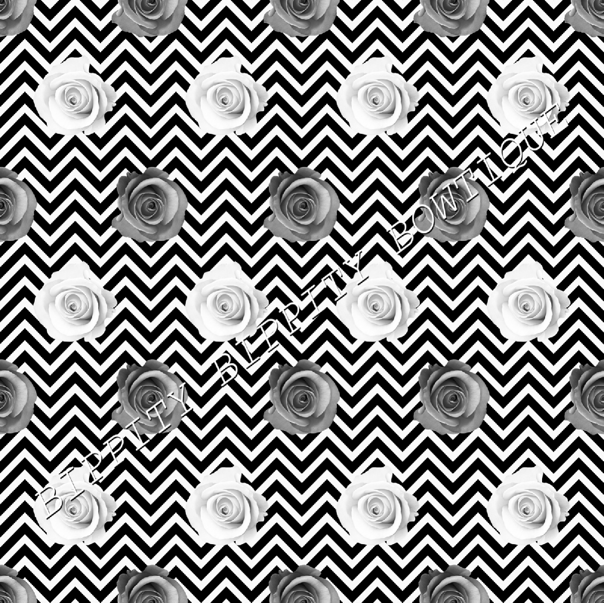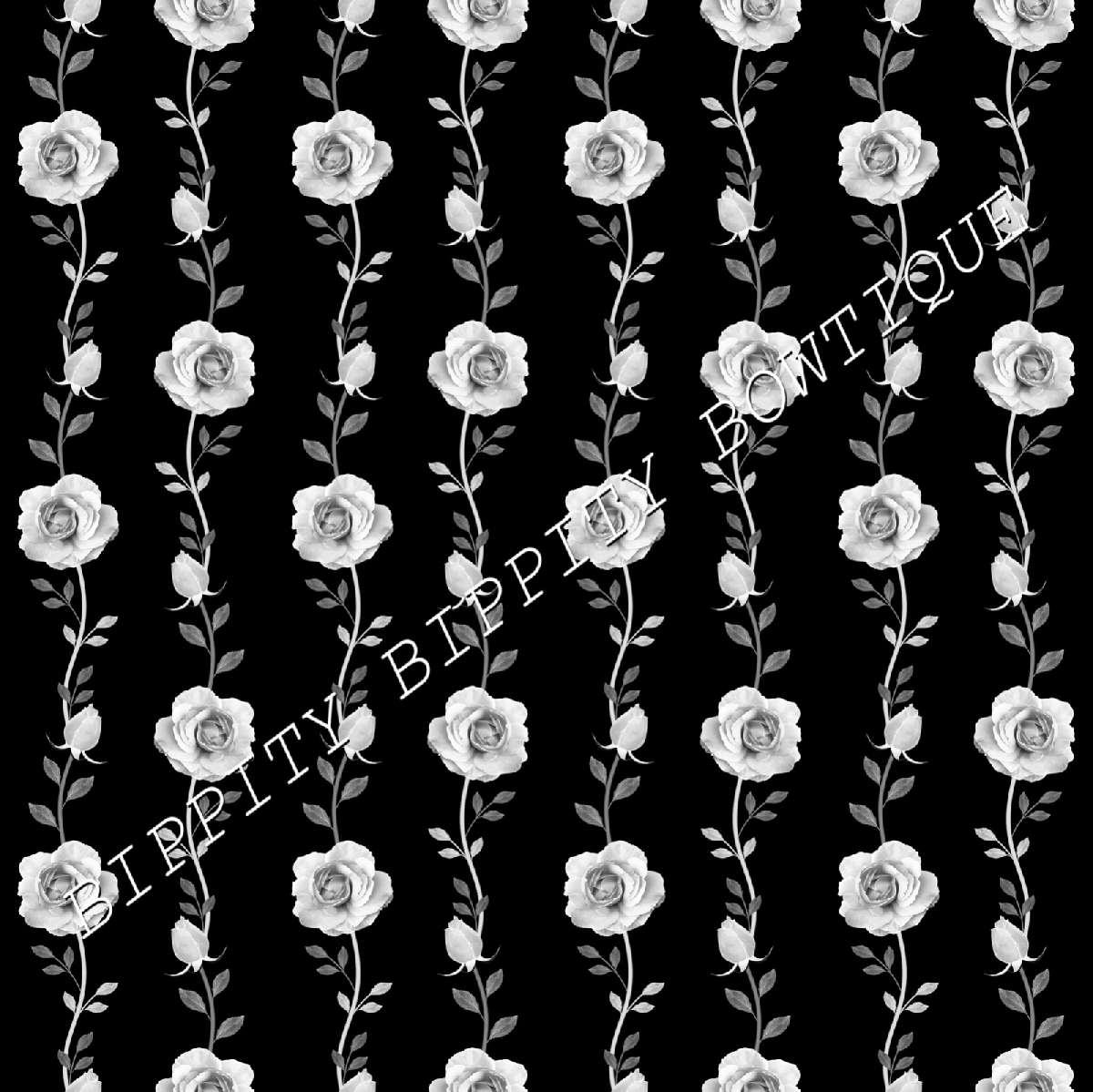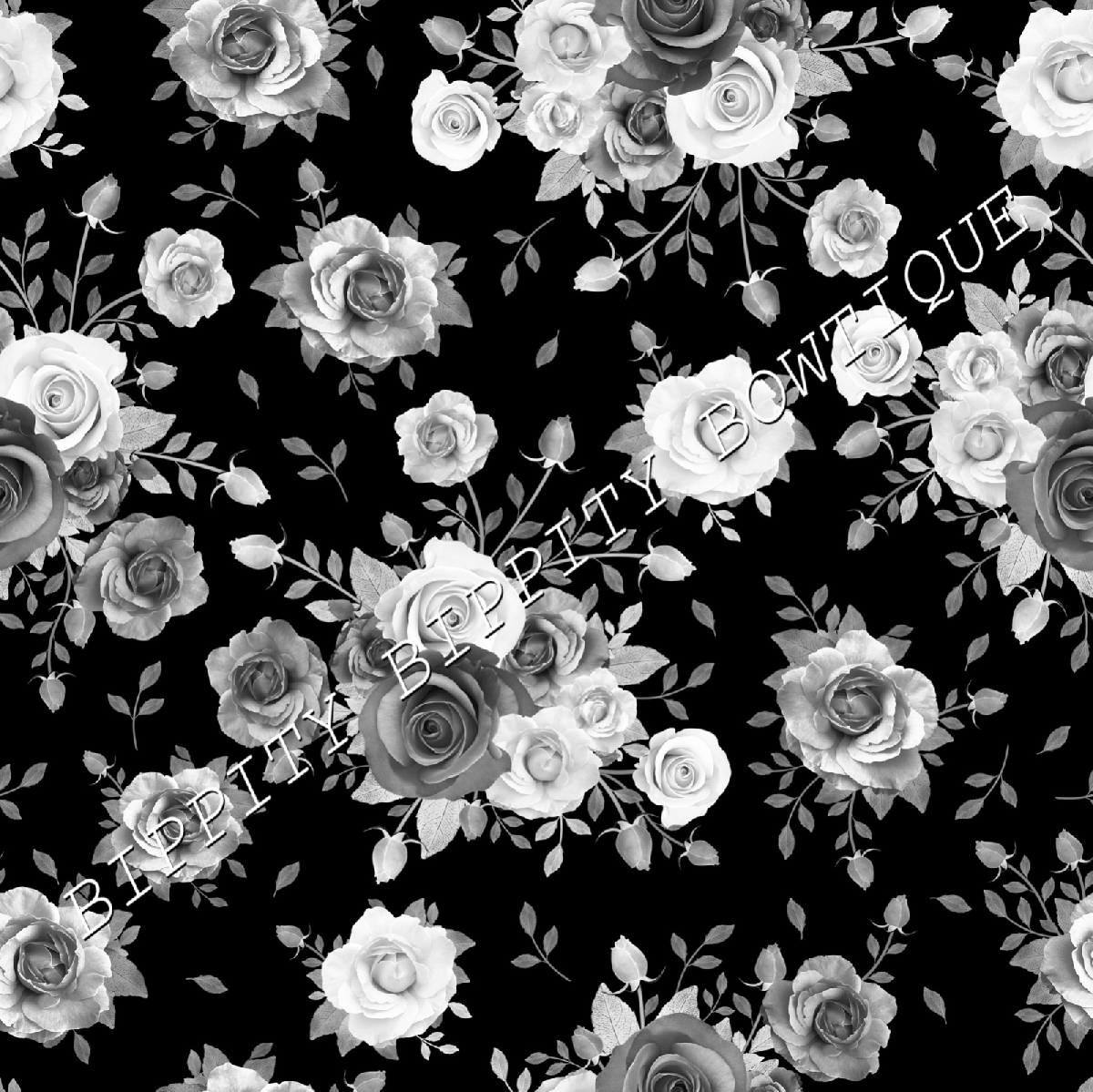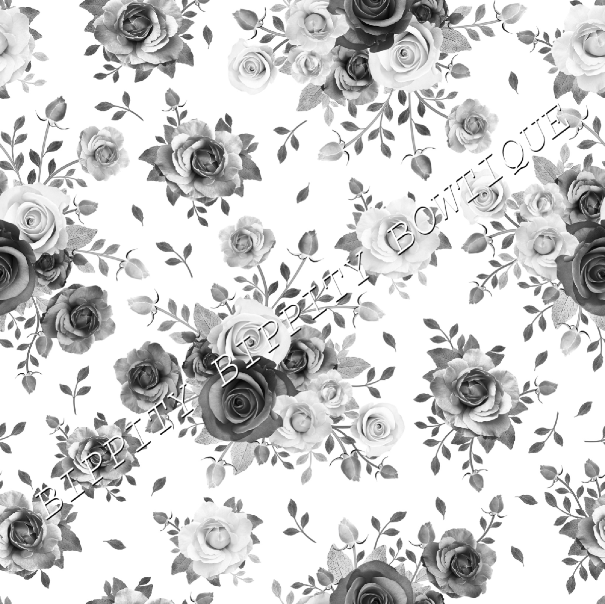GORGEOUS "MONOCHROME FLORAL" PRINTED FABRIC SHEET..HAIR BOWS, GLITTER, [ENDED]