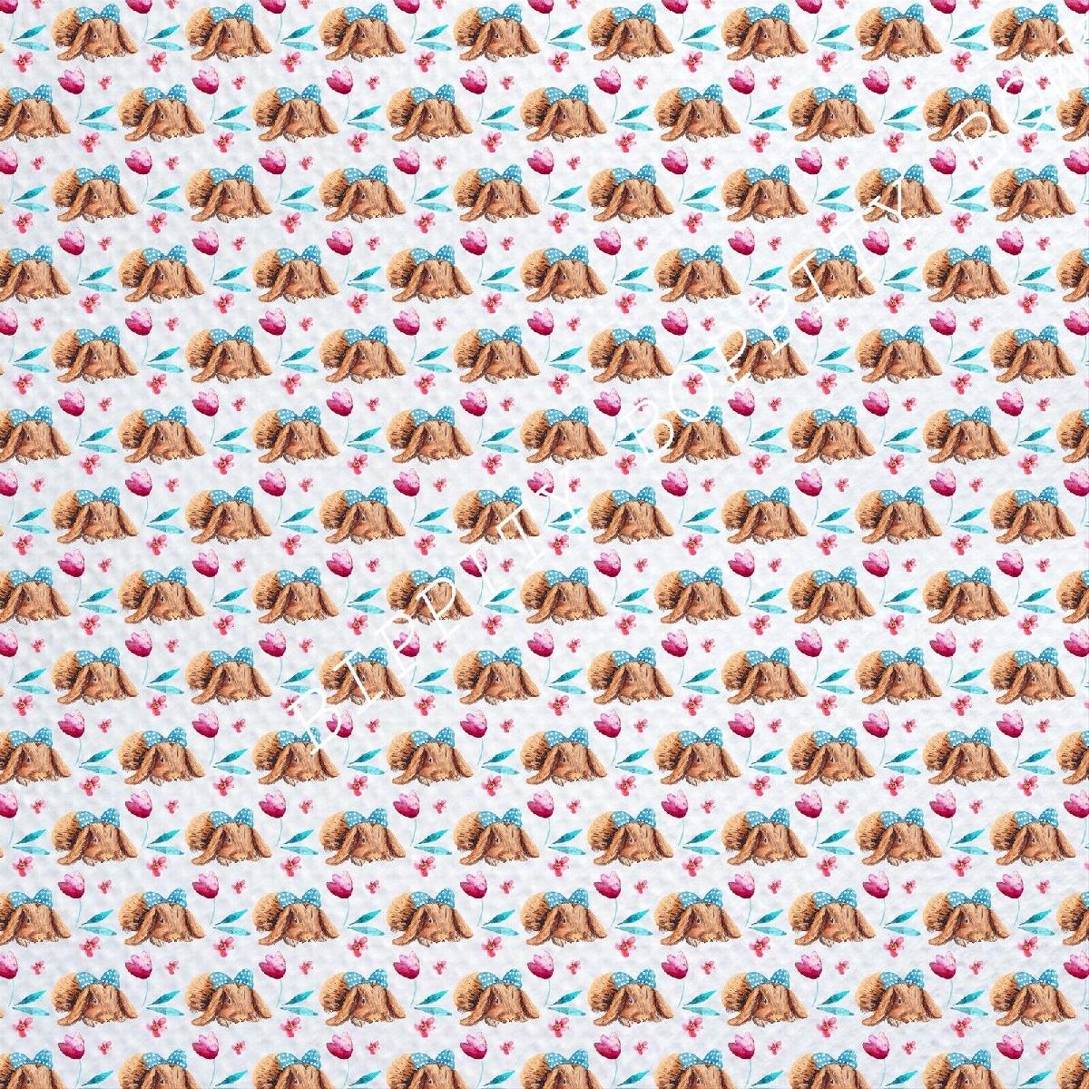 GORGEOUS "BUNNY & BOWS" EASTER CANVAS PRINTED FABRIC SHEET..HAIR BOWS [ENDED]