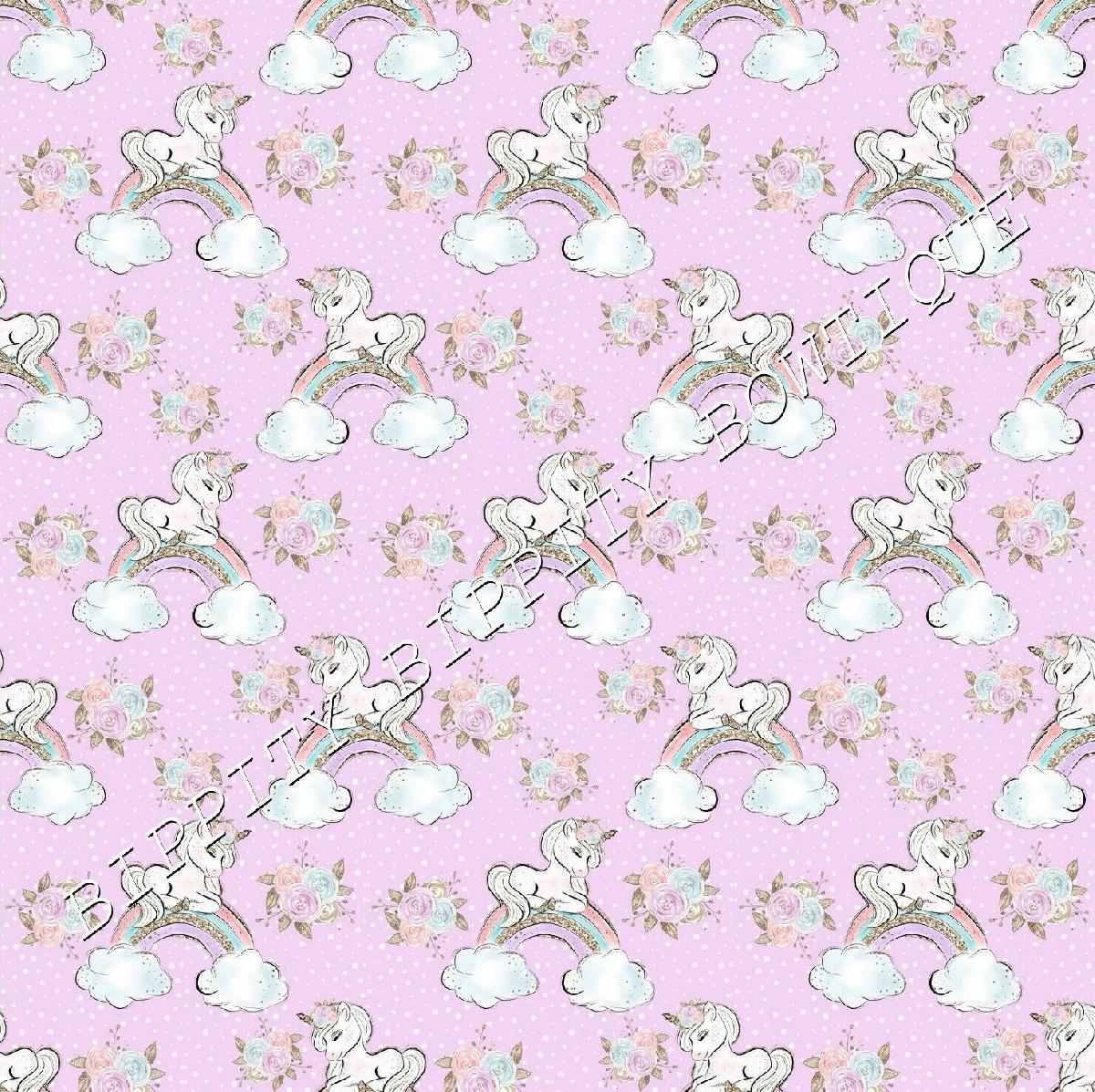 GORGEOUS "LILAC/ROSE GOLD UNICORN" PRINTED CANVAS FABRIC SHEET HAIR BOWS, CRAFTS [ENDED]
