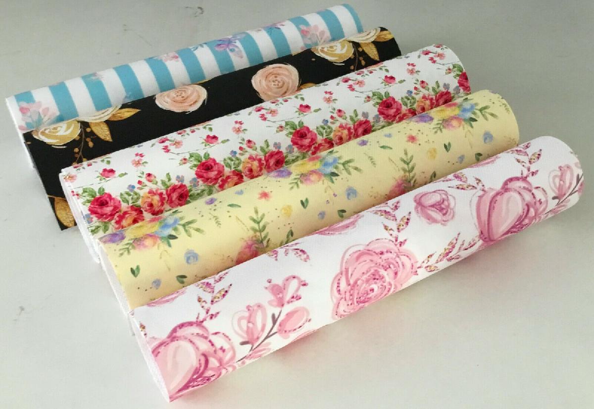 SPECIAL OFFER PACK OF 5 FLORAL CANVAS PRINTED FABRIC SHEETS..HAIR BOWS,CRAFTS [ENDED]