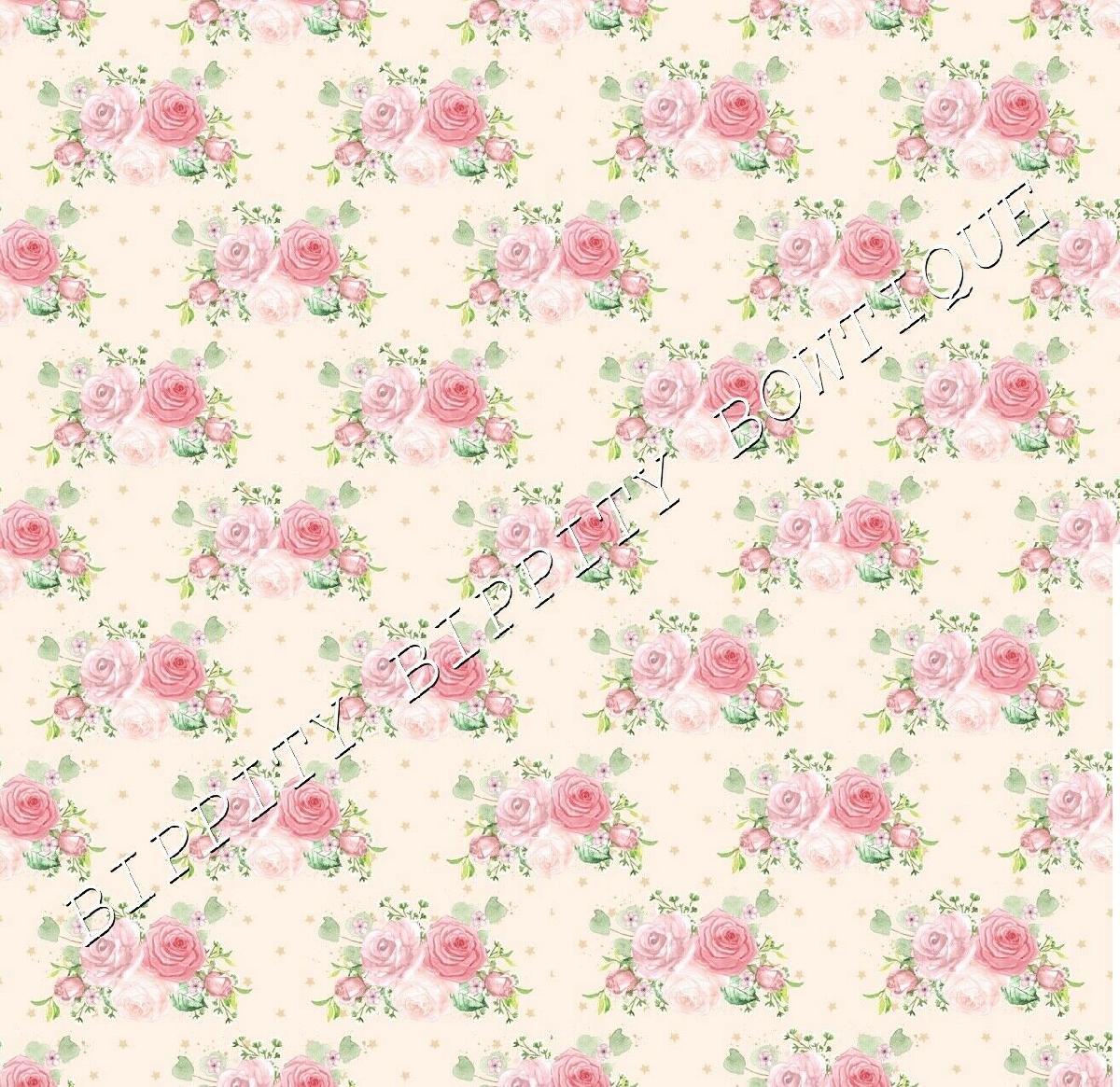 GORGEOUS "SOFT SUMMER ROSE" FLORAL CANVAS PRINTED FABRIC SHEET..HAIR BOWS, [ENDED]