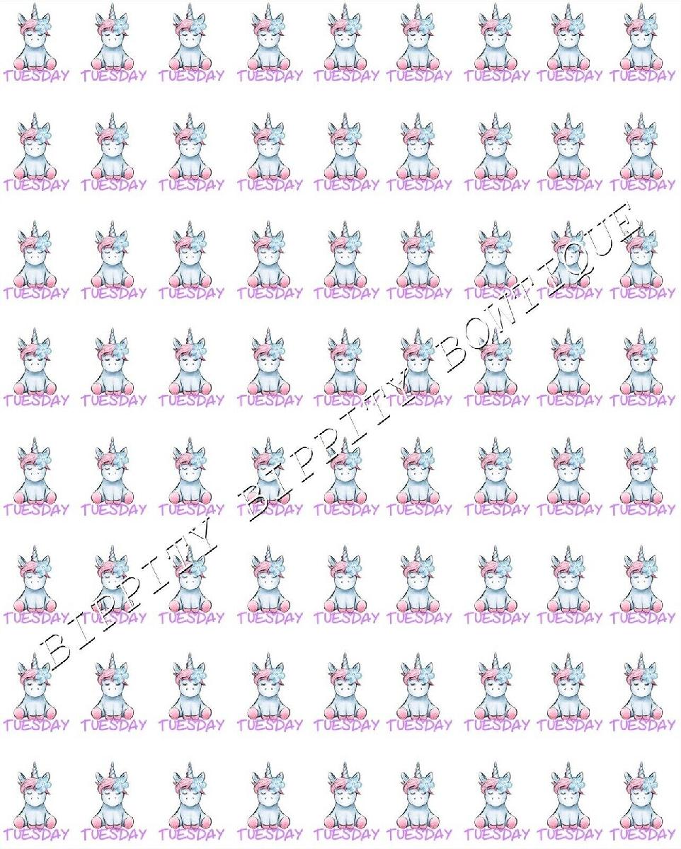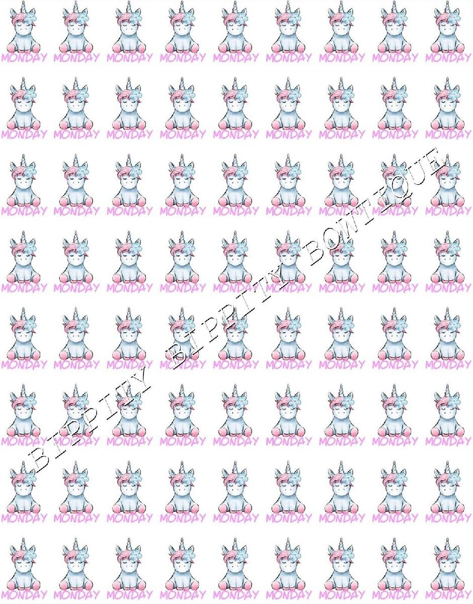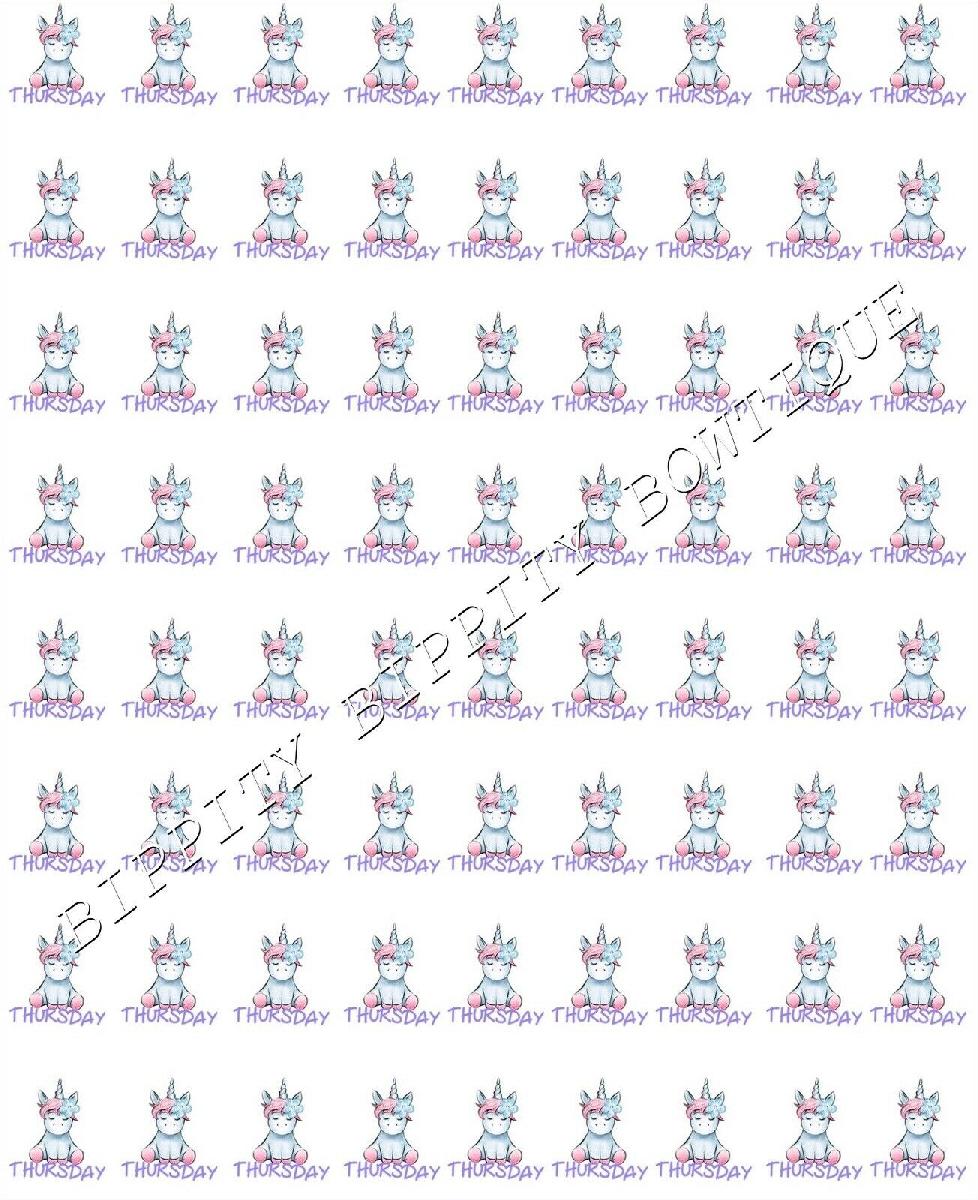 NEW " UNICORN DAYS OF THE WEEK" PRINTED CANVAS FABRIC SHEET..HAIR BOWS CRAFTS [ENDED]